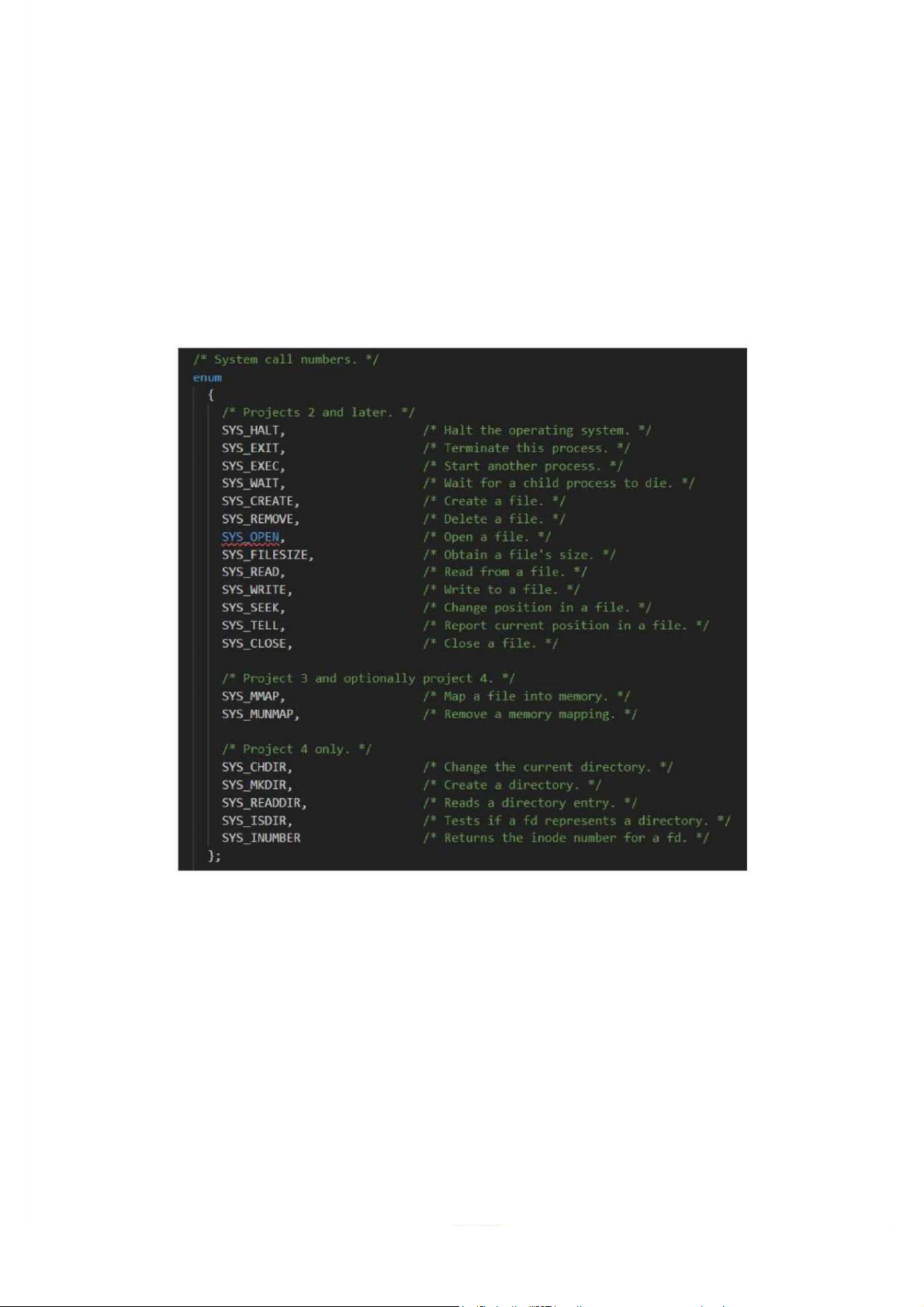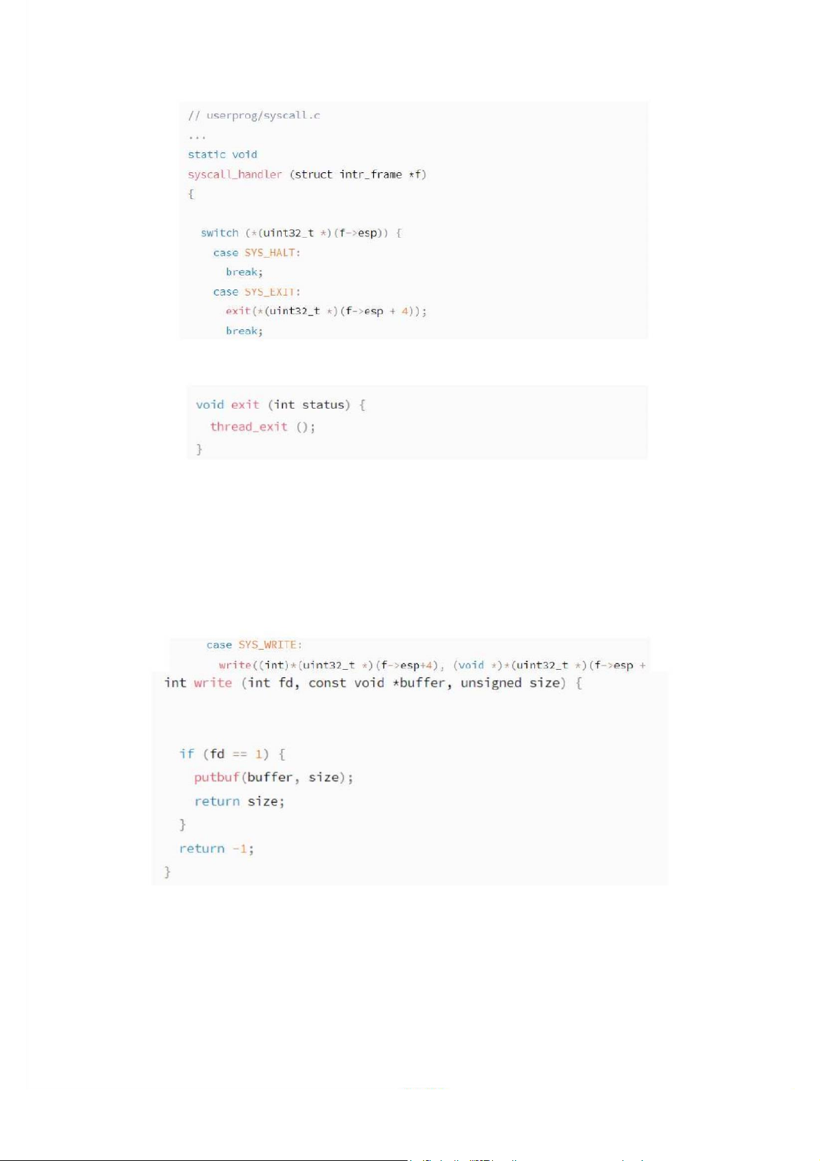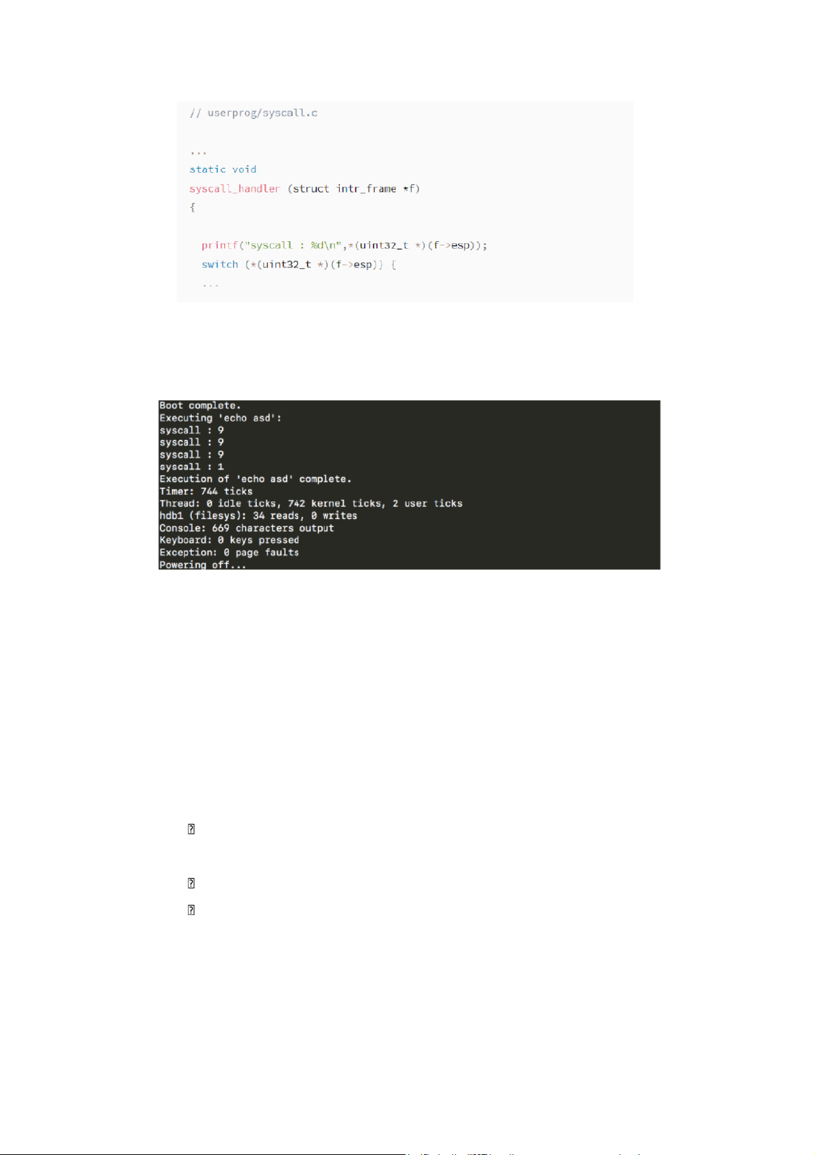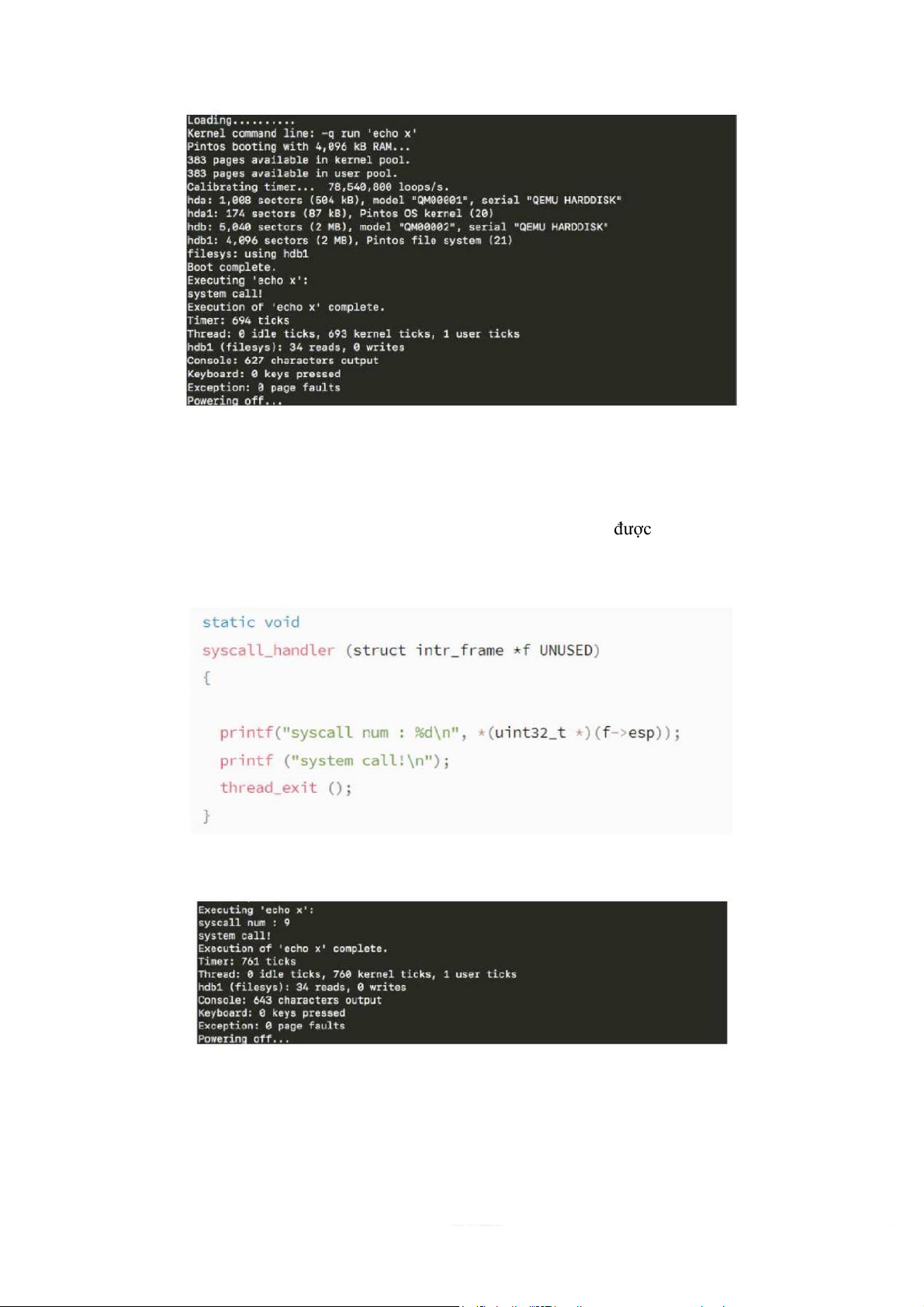 trong src/userprog/syscall.c và in ra màn hình chuỗi “system call!”. lOMoAR cPSD| 59421307