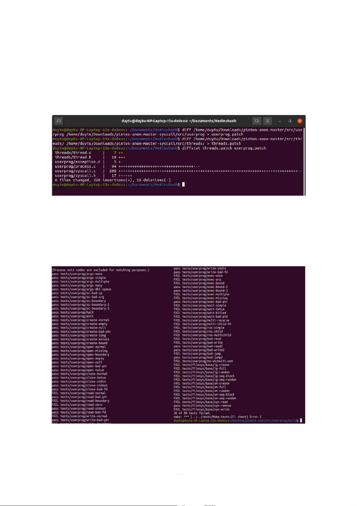 Thực hiện “make check” trong src/userprogram sau khi đã được thay đổi, kết quả thu được như sau: