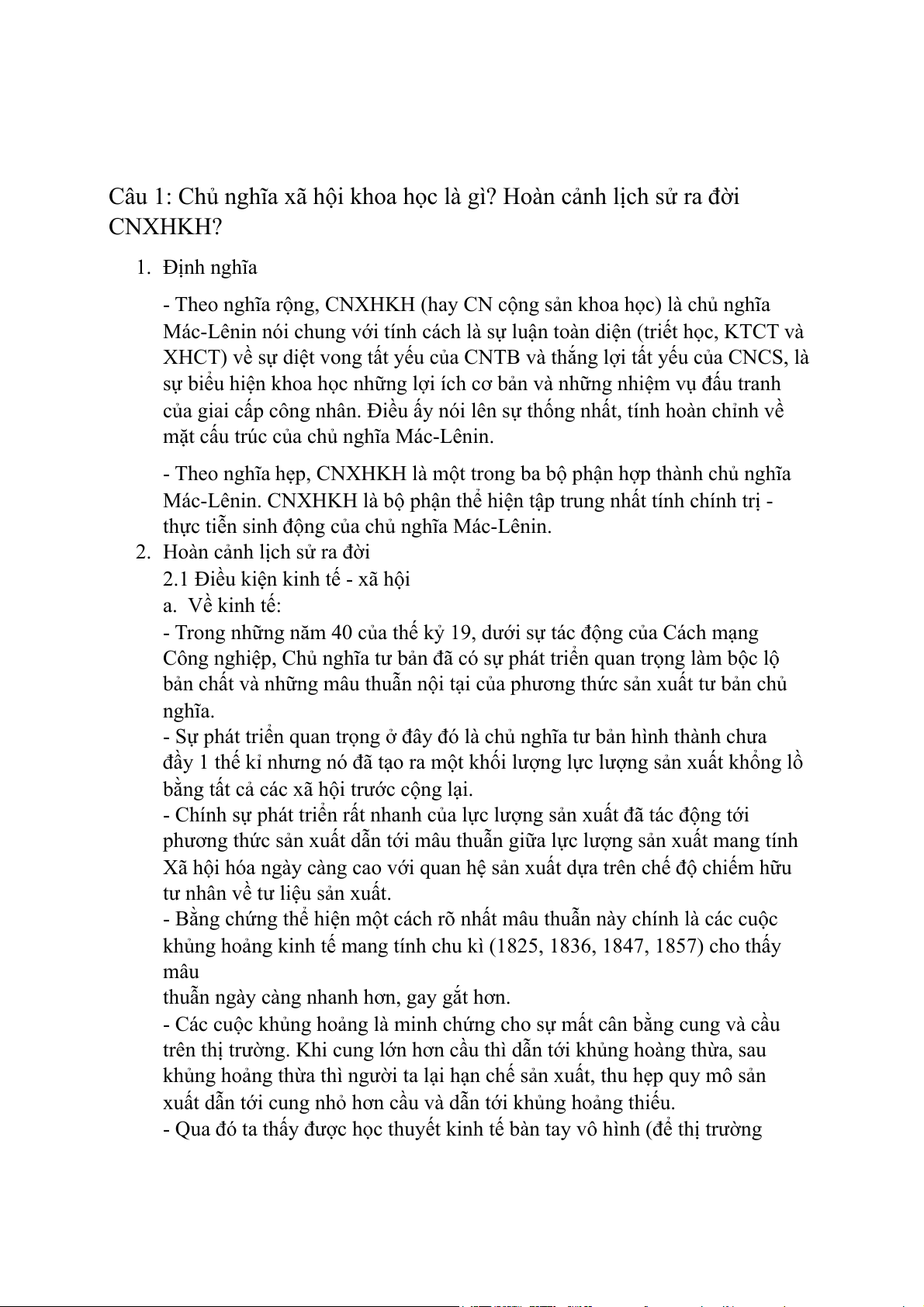 Câu 1: Chủ nghĩa xã hội khoa học là gì? Hoàn cảnh lịch sử ra đời CNXHKH? 1. Định nghĩa