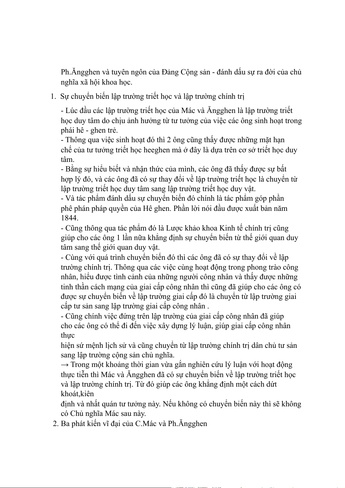 Câu 2: Vai trò của C.Mác và Ph.Ăngghen đối với sự ra đời của chủ nghĩa xã hội khoa học?