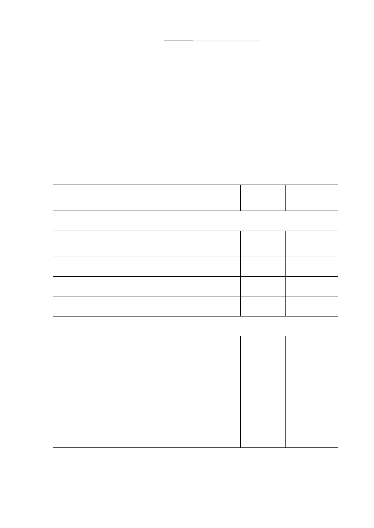 Sau quá trình thực tập của sinh viên, giáo viên hướng dẫn nhận xét, đánh giá như sau: Điểm Điểm đạt STT Hạng mục tối đa được
