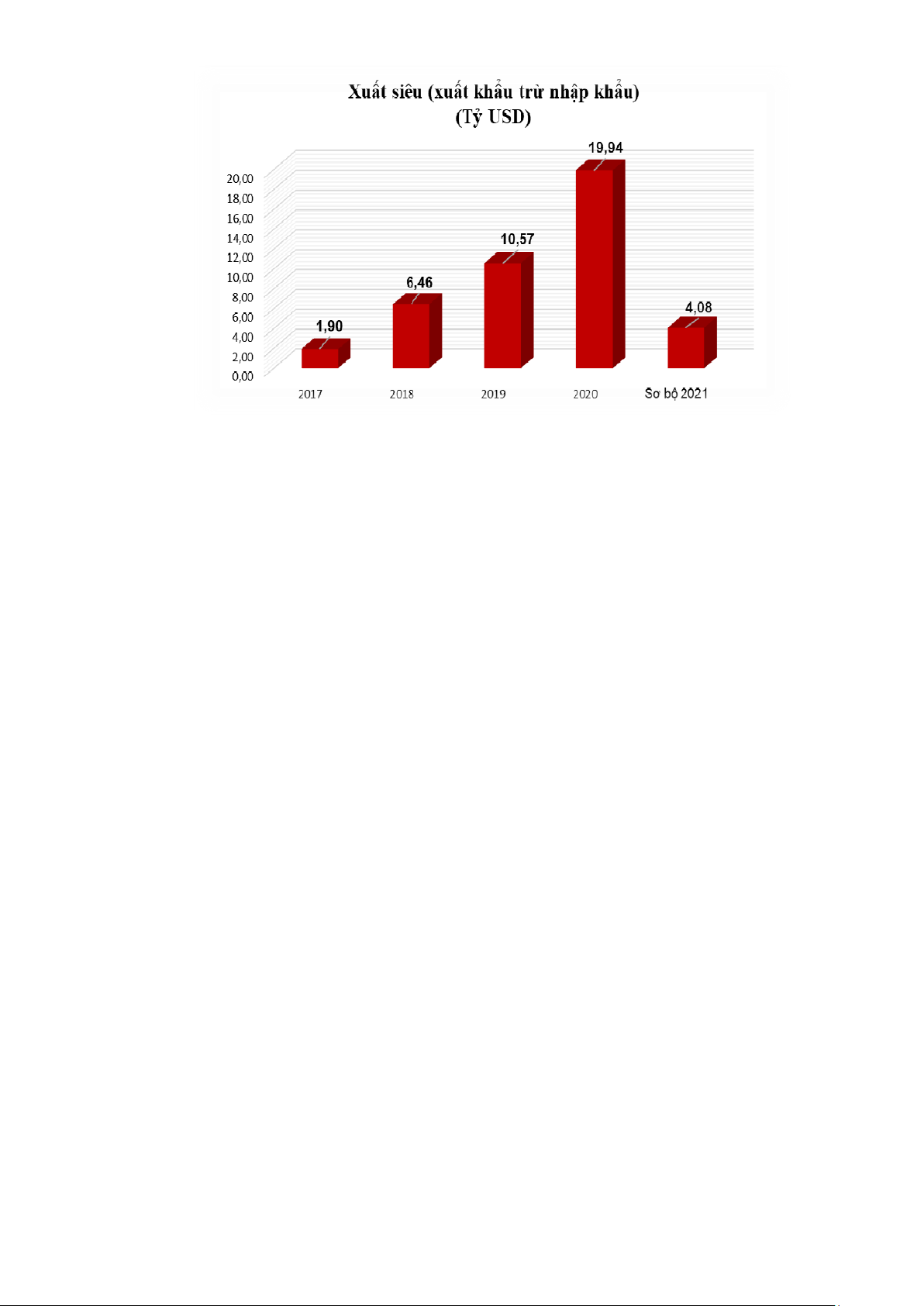 Hình 1.1. Biểu đồ cột thể hiện mức xuất siêu của xuất nhập khẩu Việt Nam tính từ năm 2016 lOMoAR cPSD| 58797173
