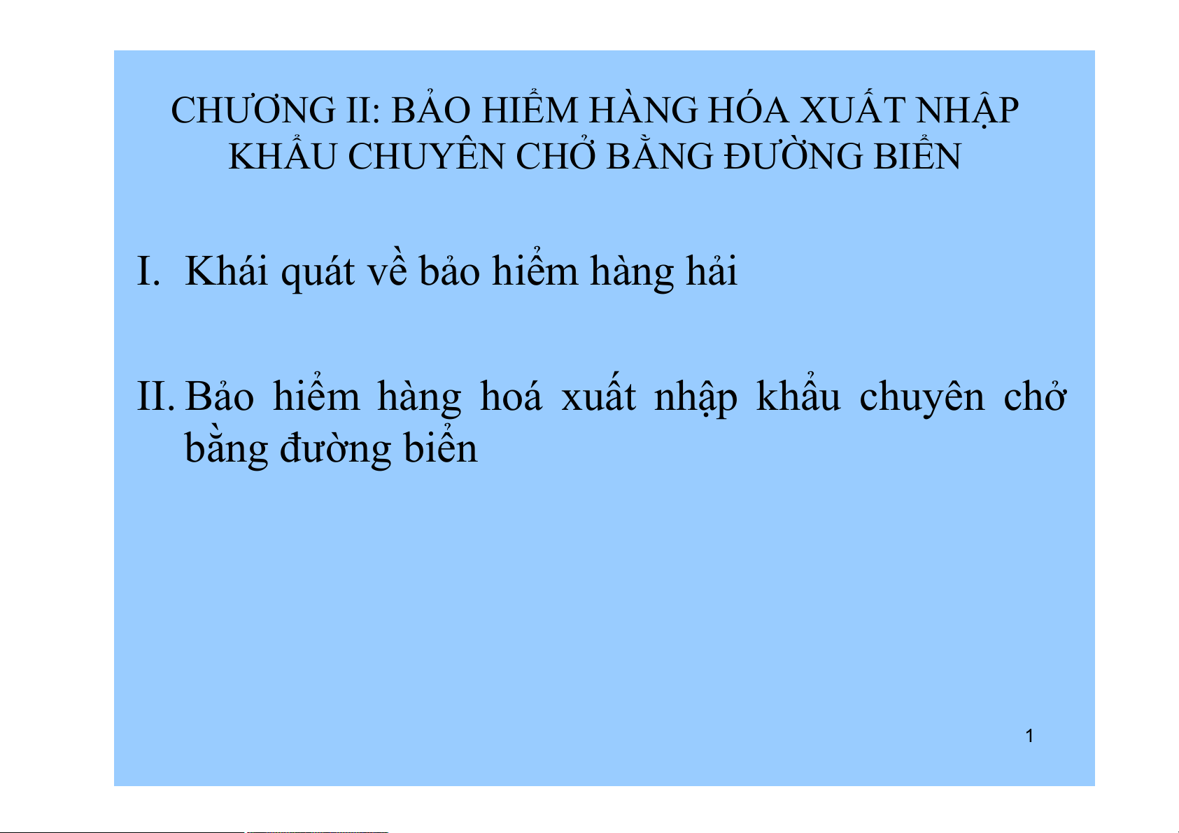 II. Bảo hiểm hàng hoá xuất nhập khẩu chuyên chở bằng đường biển 1 I.