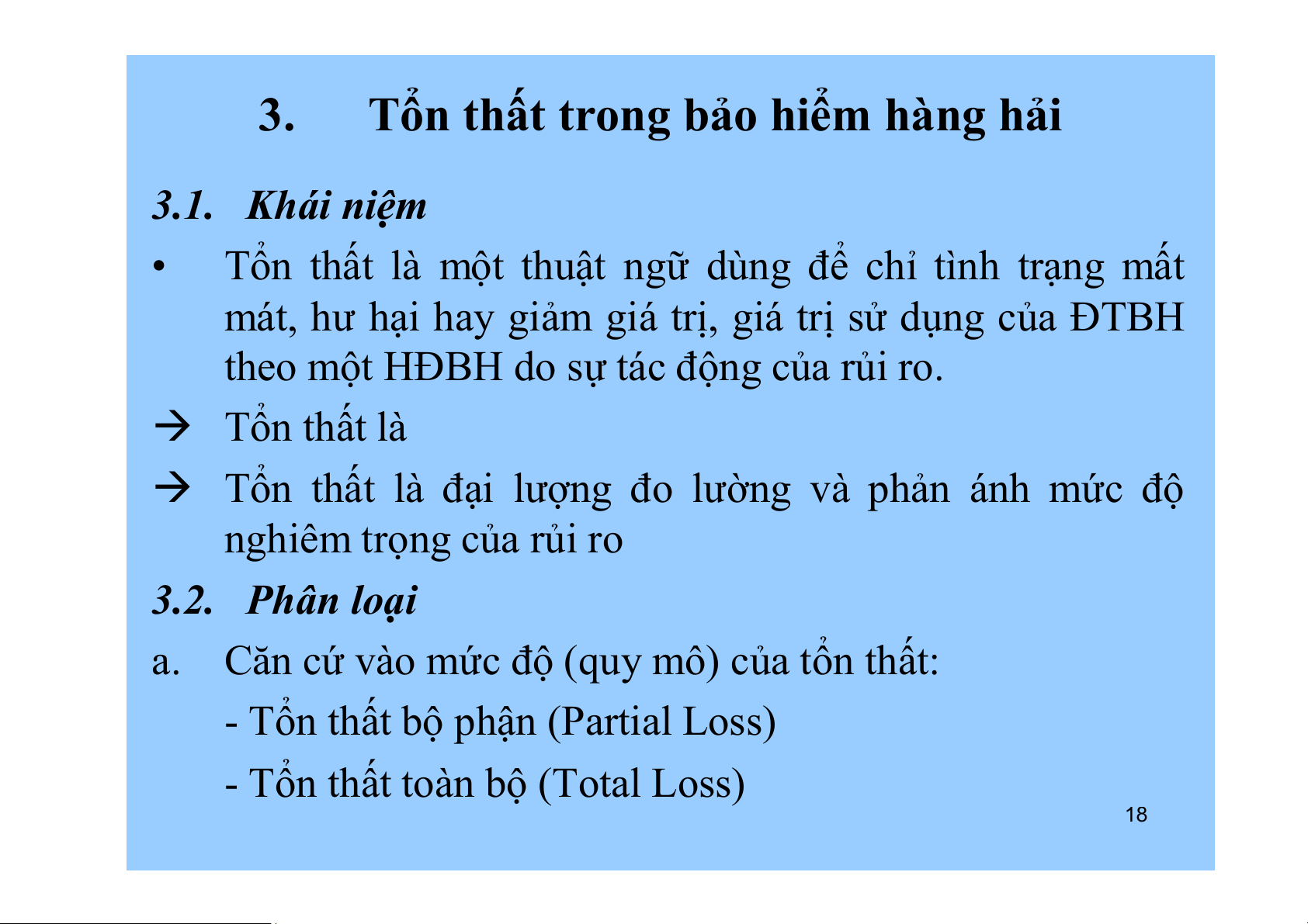 3. Tổn thất trong bảo hiểm hàng hải 3.1. Khái niệm 3.2. Phân loại 2