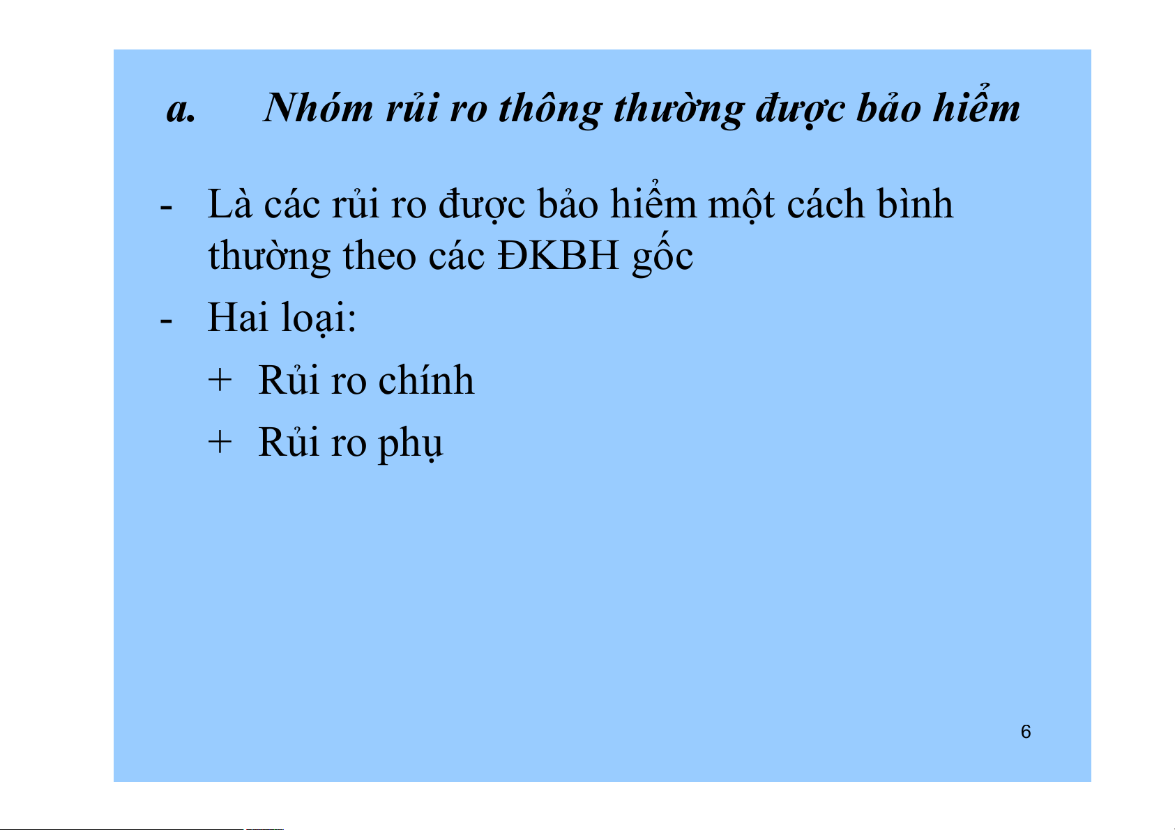 a. Nhóm rủi ro thông thường được bảo hiểm