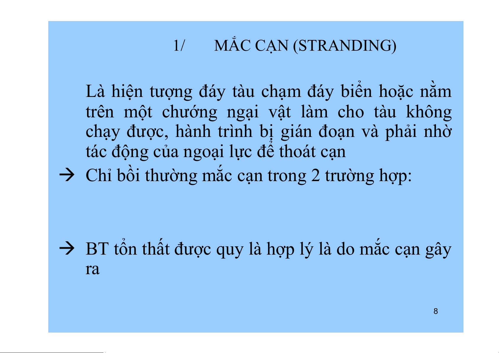 + được bảo hiểm trong............................ + bao gồm các rủi ro sau: 1/ Mắc cạn 2/ Chìm đắm 3/ Cháy nổ 4/ Đâm va 5/ Mất tích 6/ Vứt khỏi tàu 7 1/ MẮC CẠN (STRANDING)