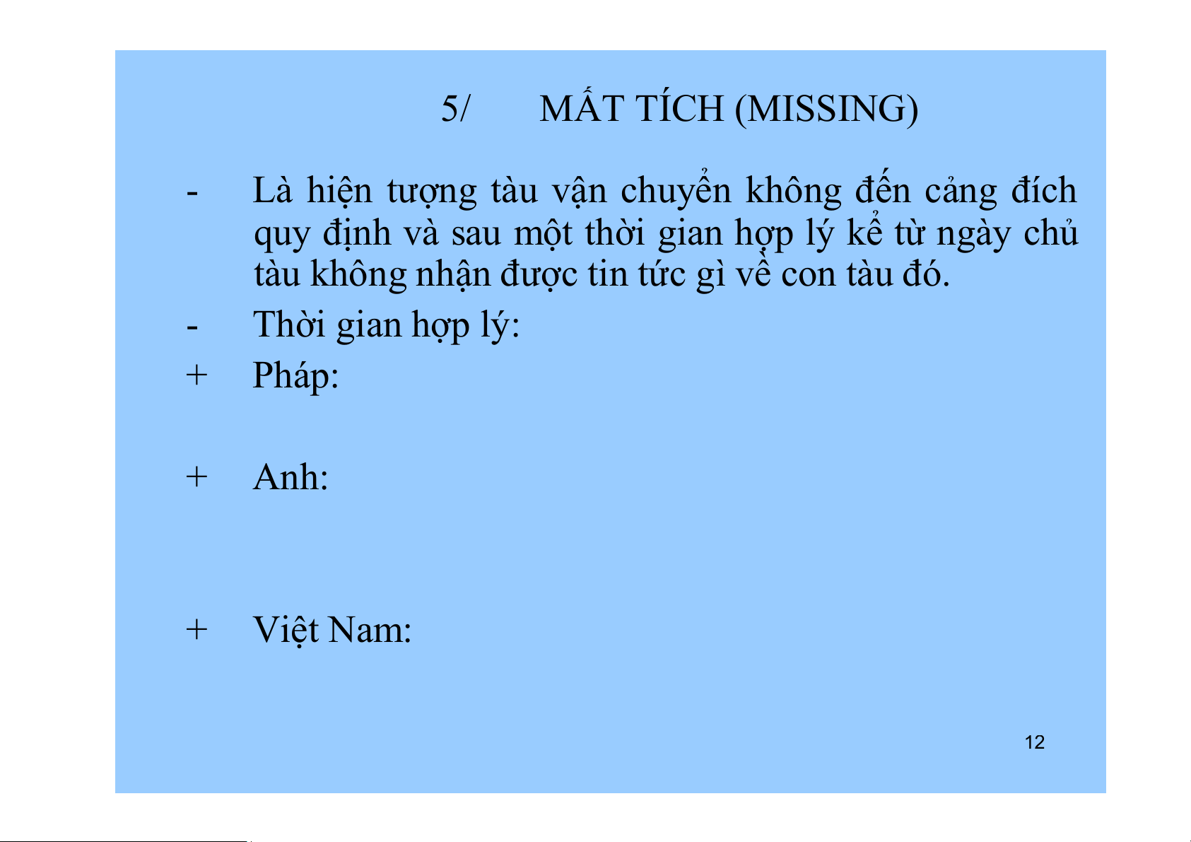 Tàu đâm va vào vật thể khác ngoài tàu biển 11 5/ MẤT TÍCH (MISSING) -
