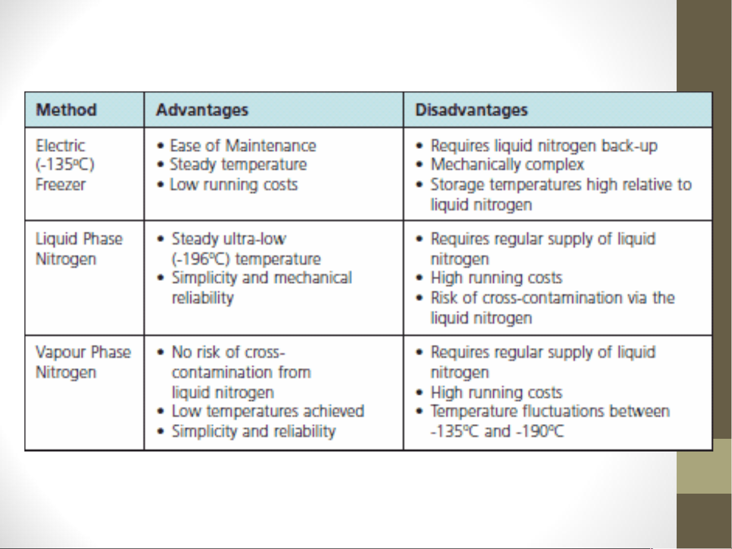 - Bảo quản lâu dài trong nhiệt độ (-135 hoặc thấp hơn) - Rã đông nhanh
