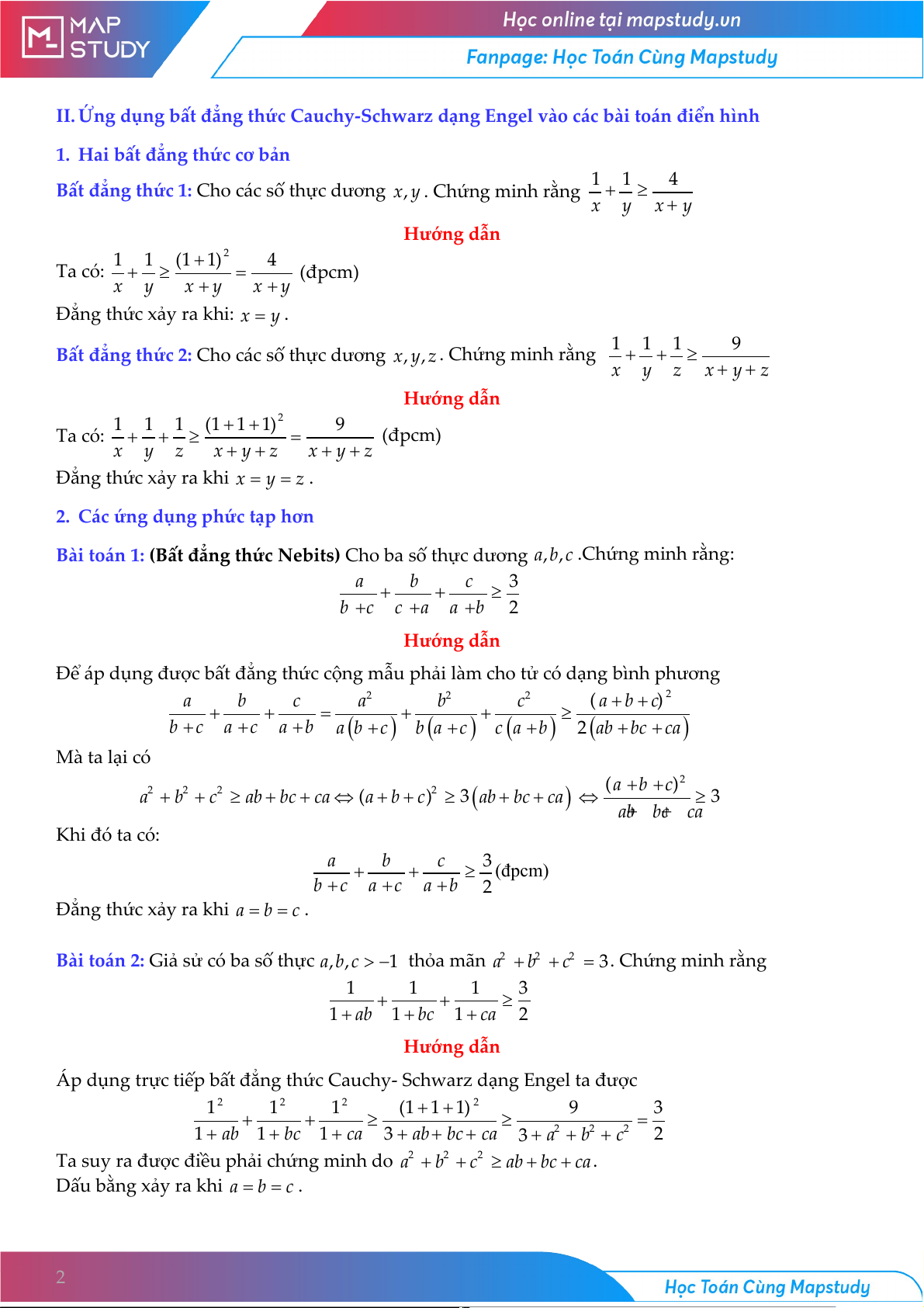đ ng thức Cauchy-Schwarz dạng Engel.