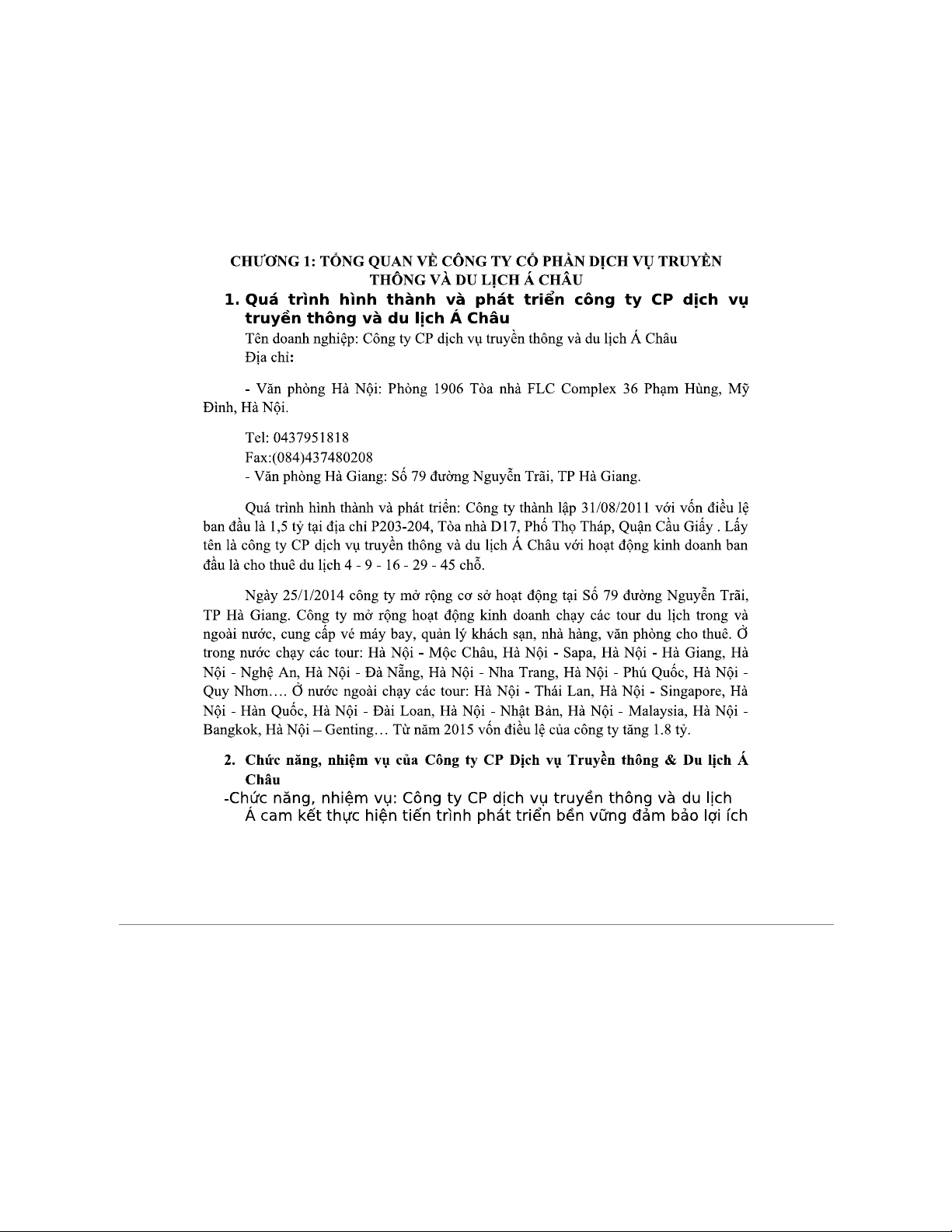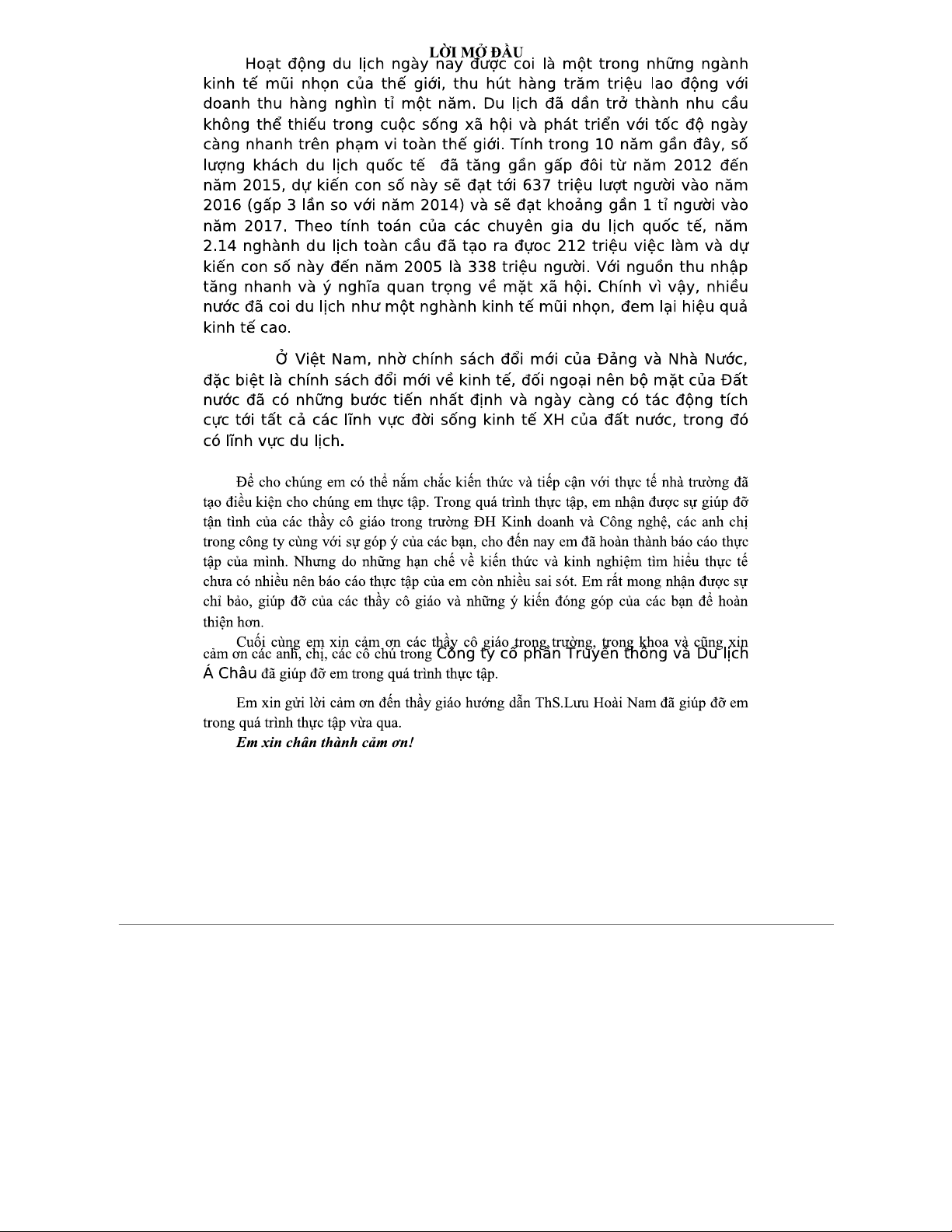 BCTT - Đỗ Thùy Linh - Báo cáo thực tập du lịch tại Công ty Á Châu