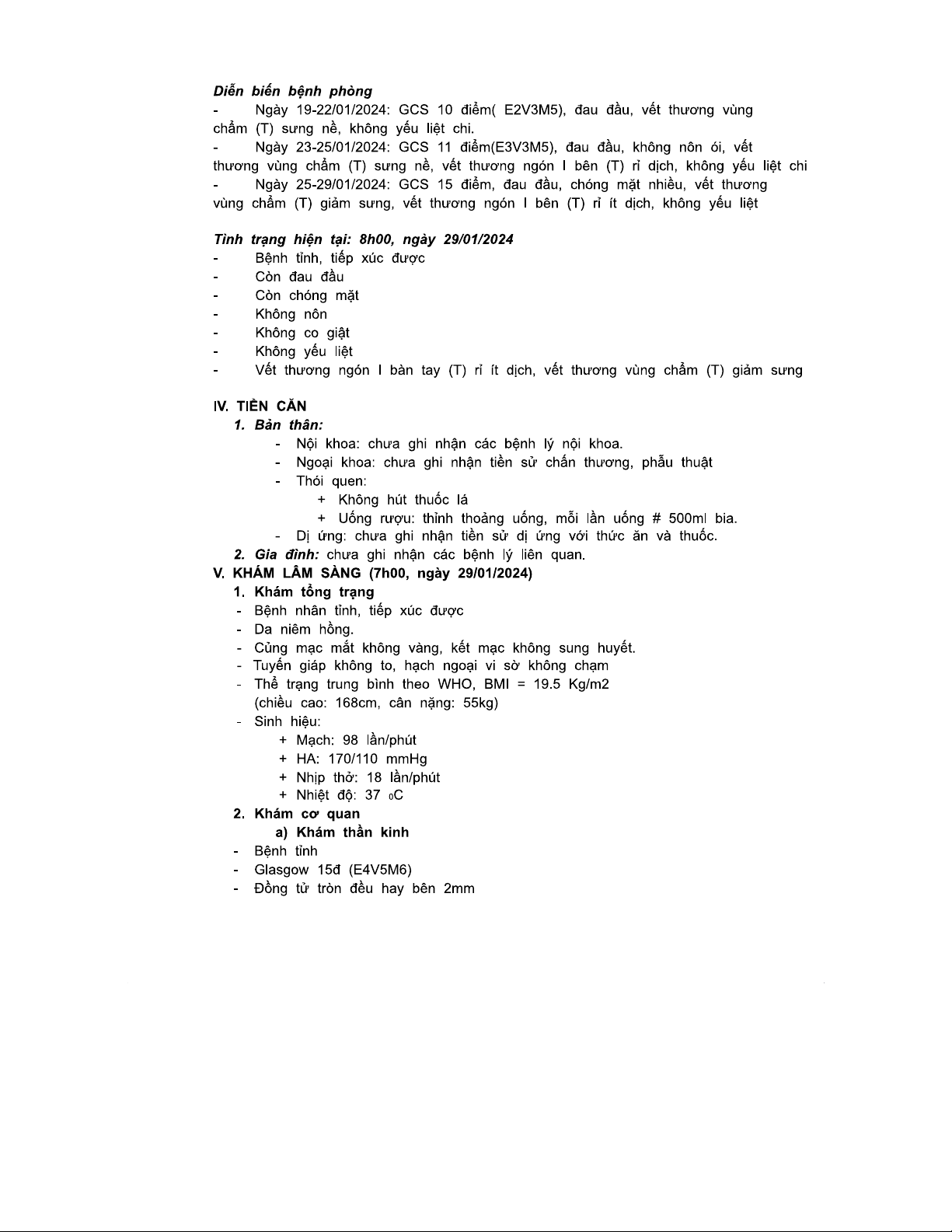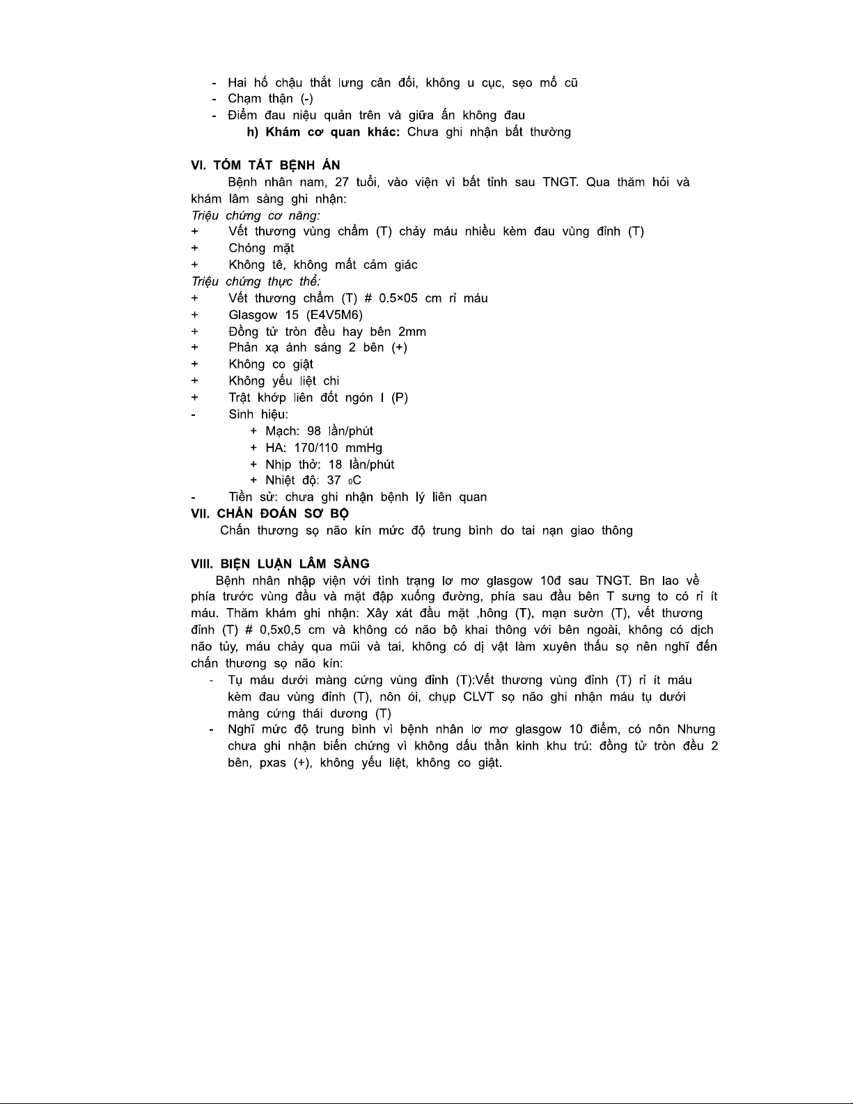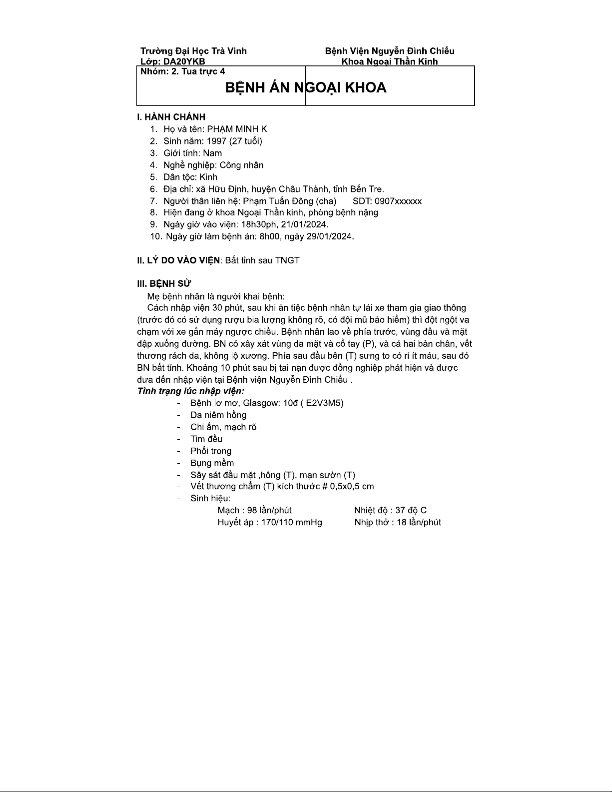 BỆNH ÁN CHẤN THƯƠNG SỌ NÃO - DA20YKB - TNGT Nguy Hiểm