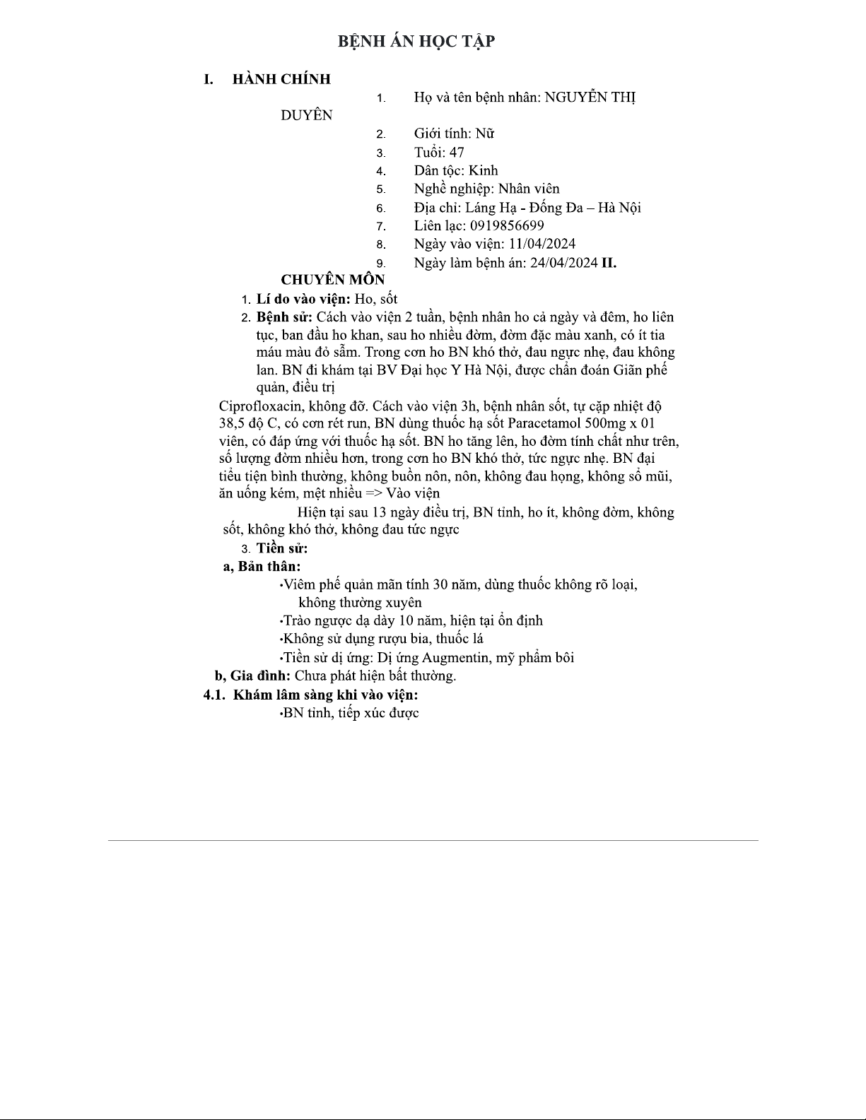 BỆNH ÁN: Ghi Nhận và Điều Trị Viêm Phổi (1)