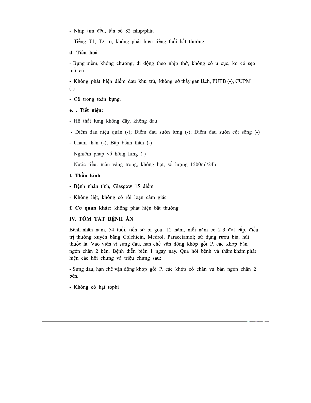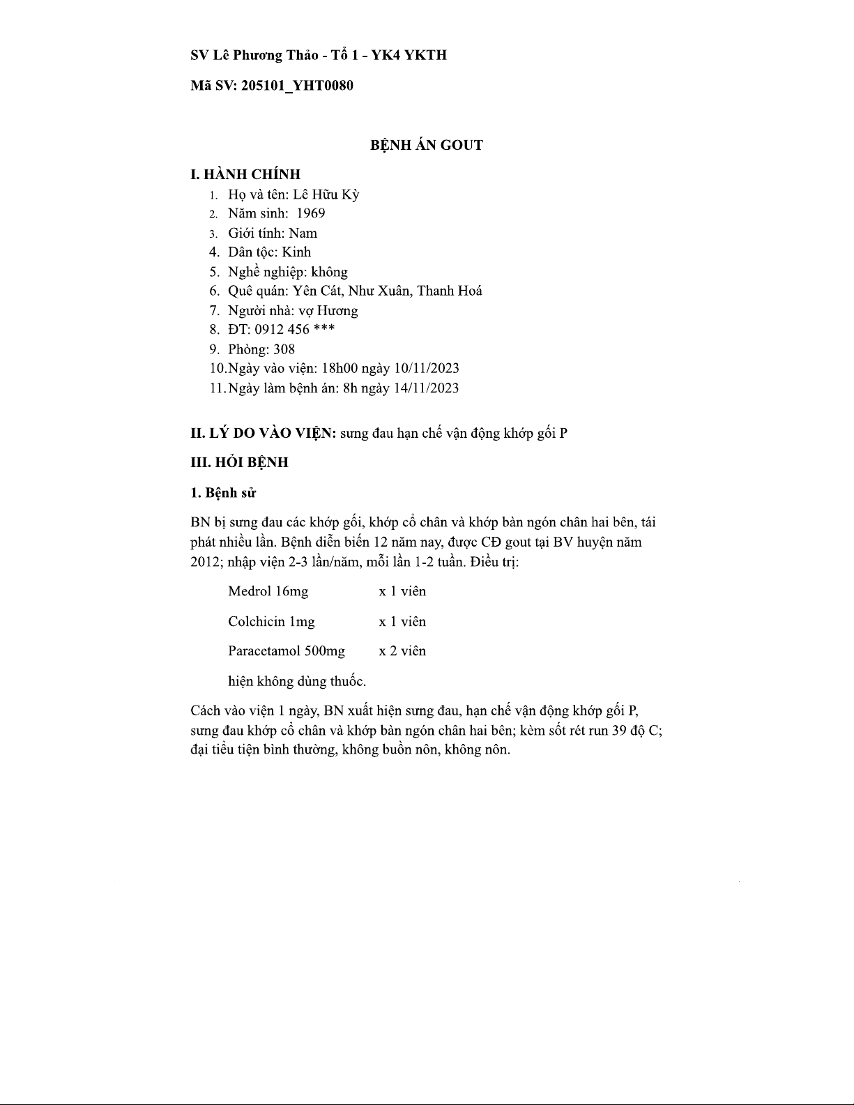 BỆNH ÁN GOUT - YK4 YKTH - Lê Hữu Kỳ, 54 tuổi, điều trị đợt cấp