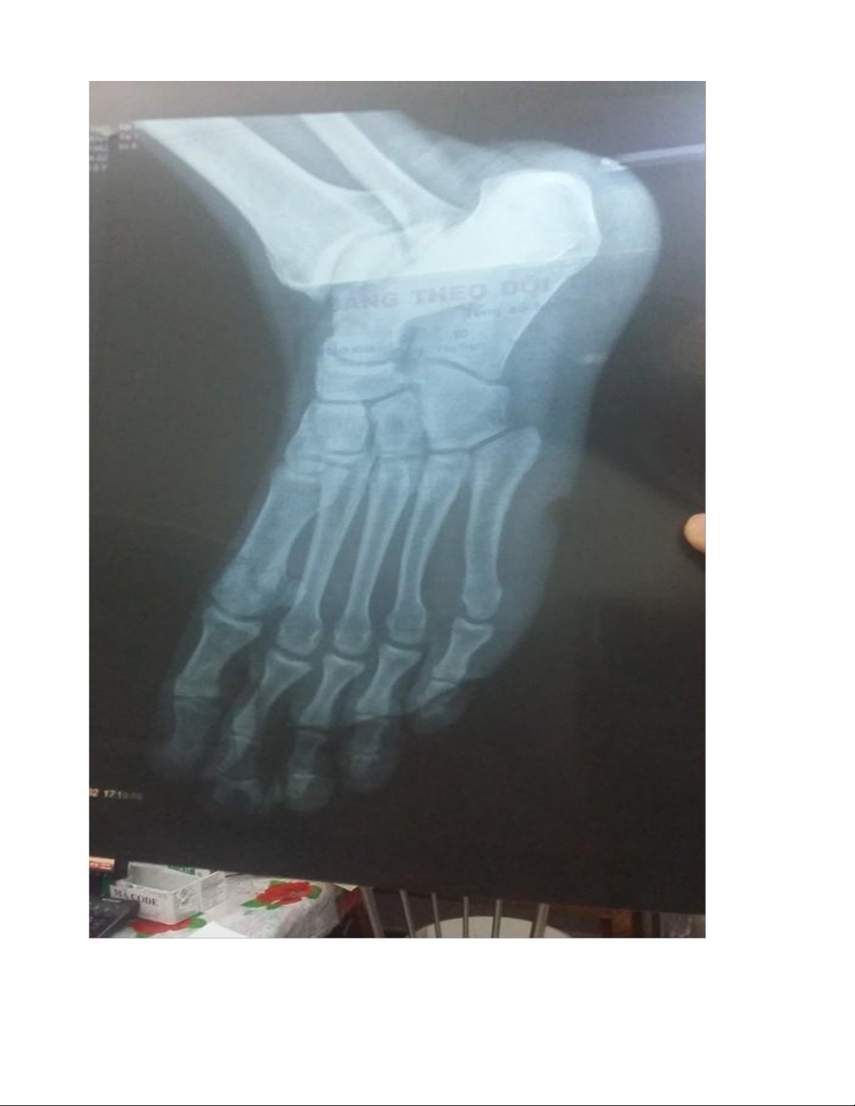 - Bệnh nhân được bó bột cẳng bàn chân (T), vết thương khô, không chảy máu, giới hạn bột: