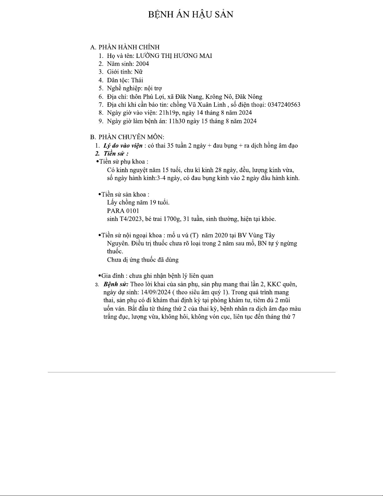 Bệnh Án Hậu Sản 1 - Thông Tin Chi Tiết Về Đối Tượng Hậu Sản