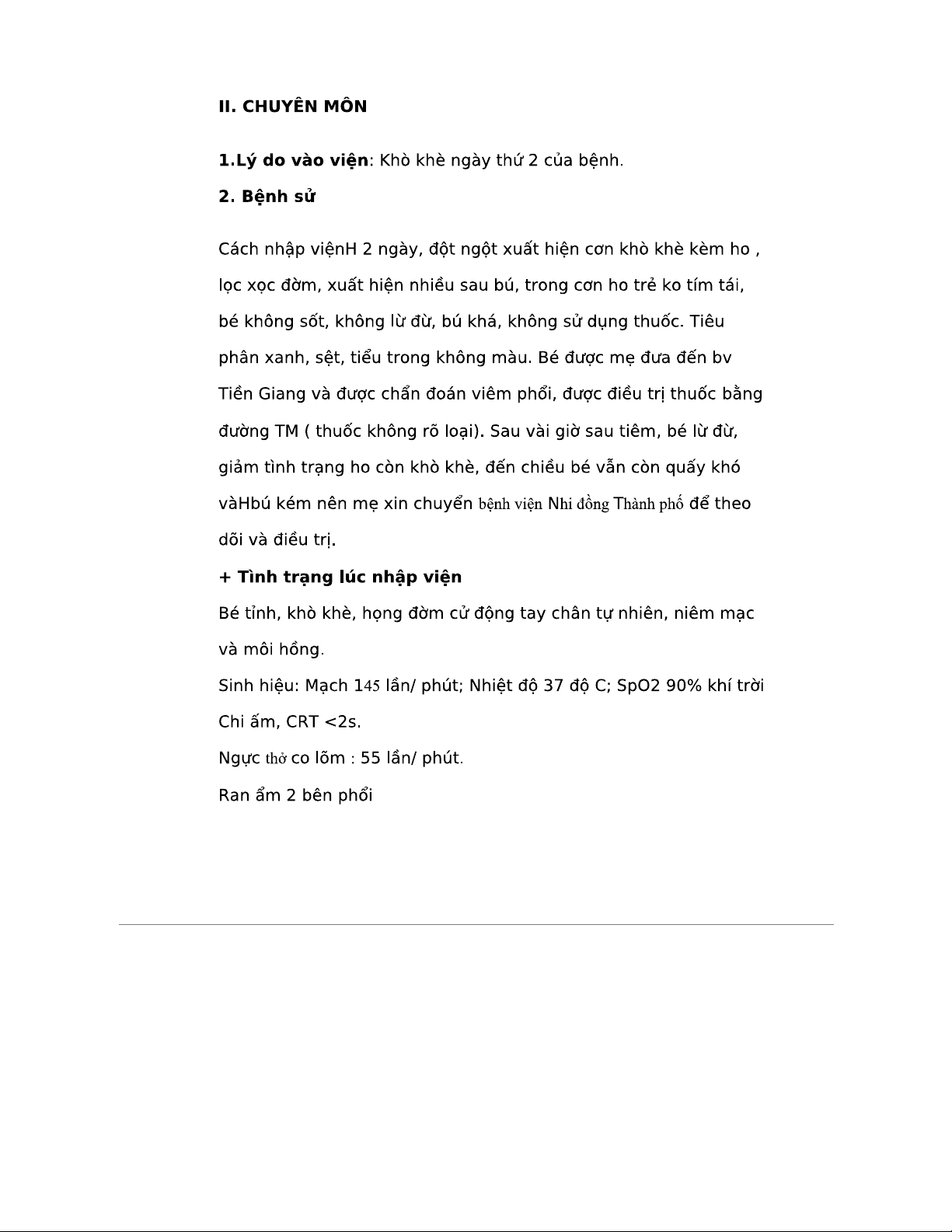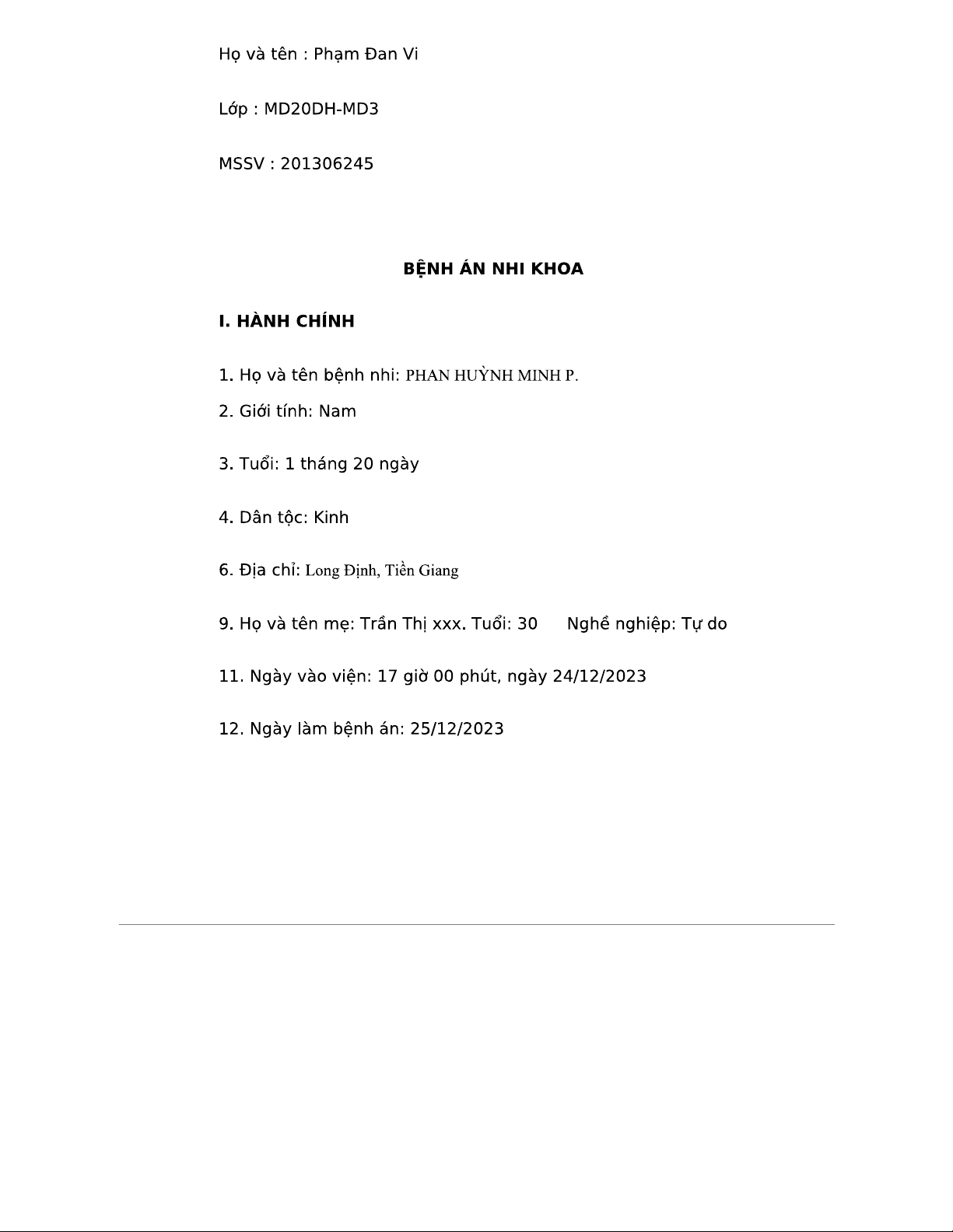BỆNH ÁN NHI KHOA 2 - PHAN HUỲNH MINH P. CĂN CỨ Y KHOA 2023