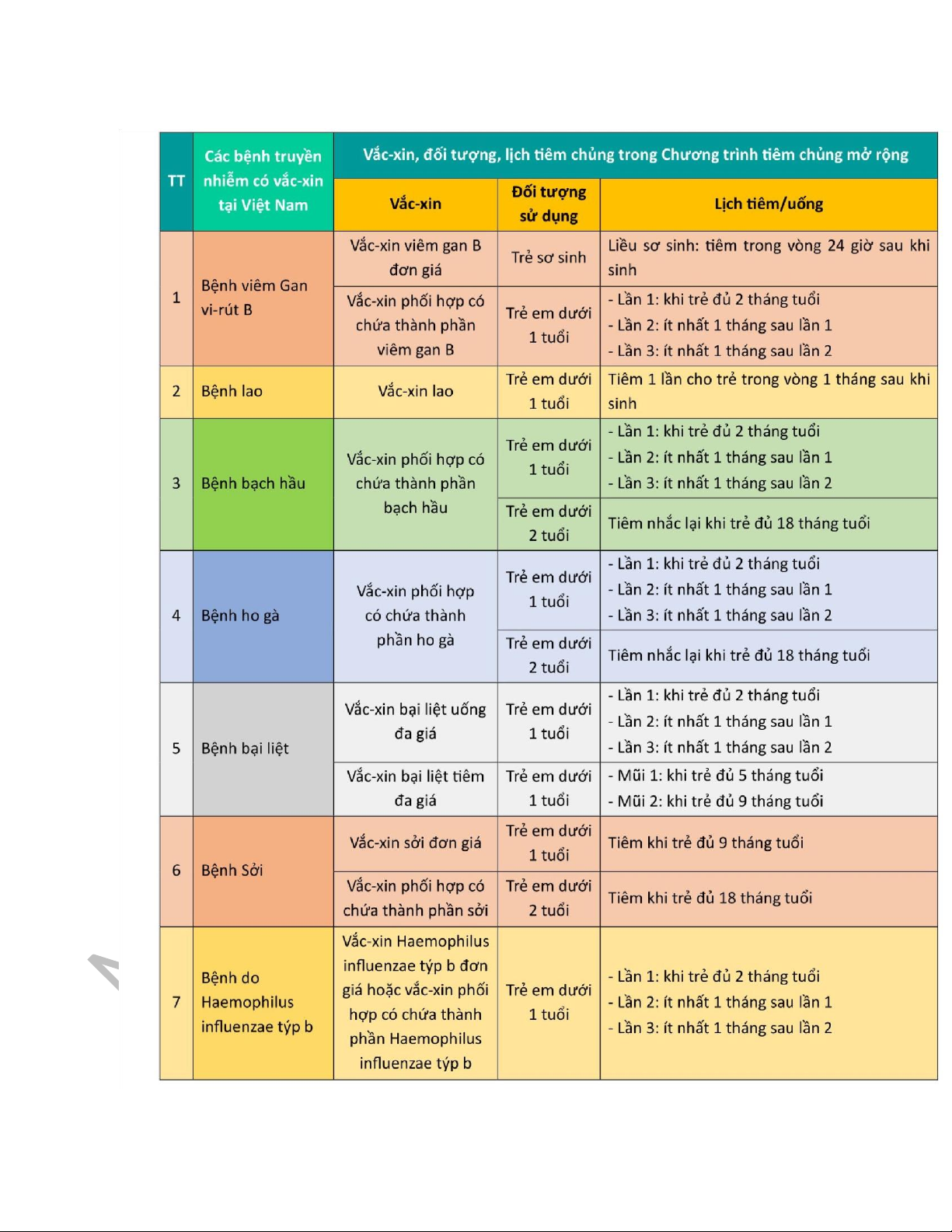 4. Tiền sử tiêm phòng: Trẻ được tiêm phòng đầy đủ theo chương trình TCMR, mũi phế cầu, Hib