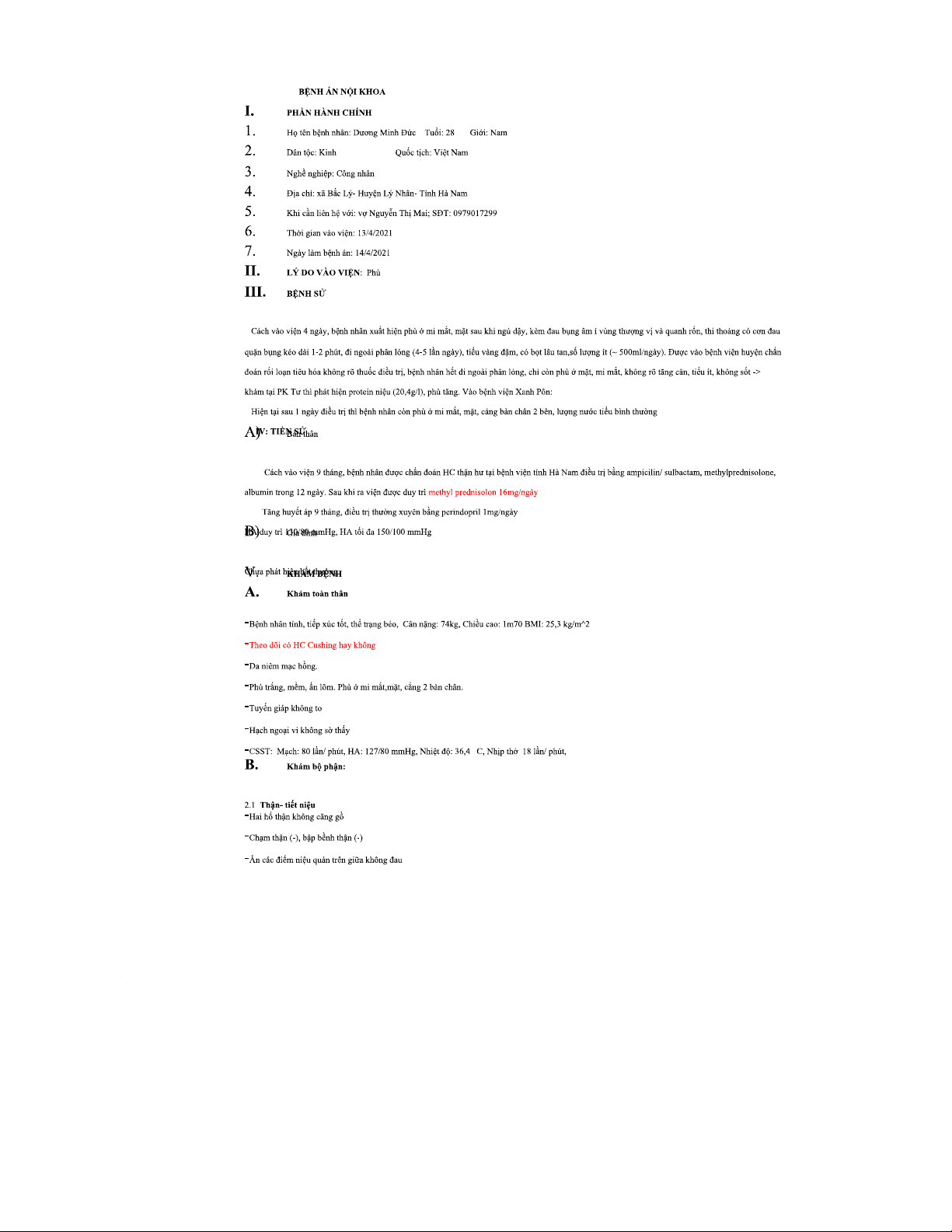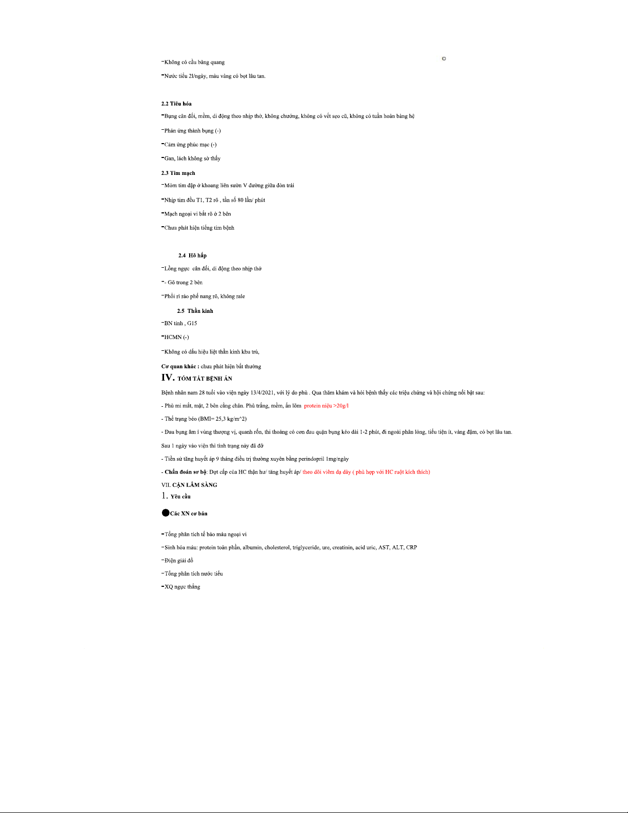 Bệnh án nội khoa: Hội chứng thận hư ở nam 28 tuổi