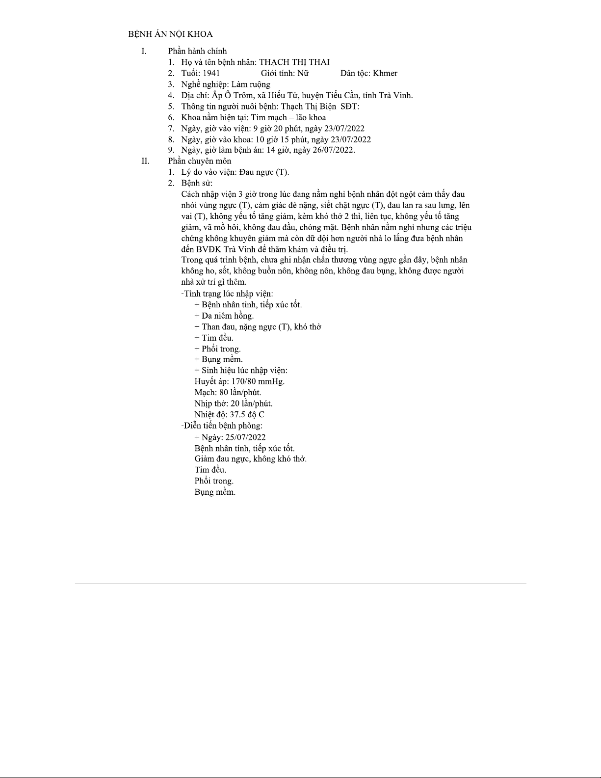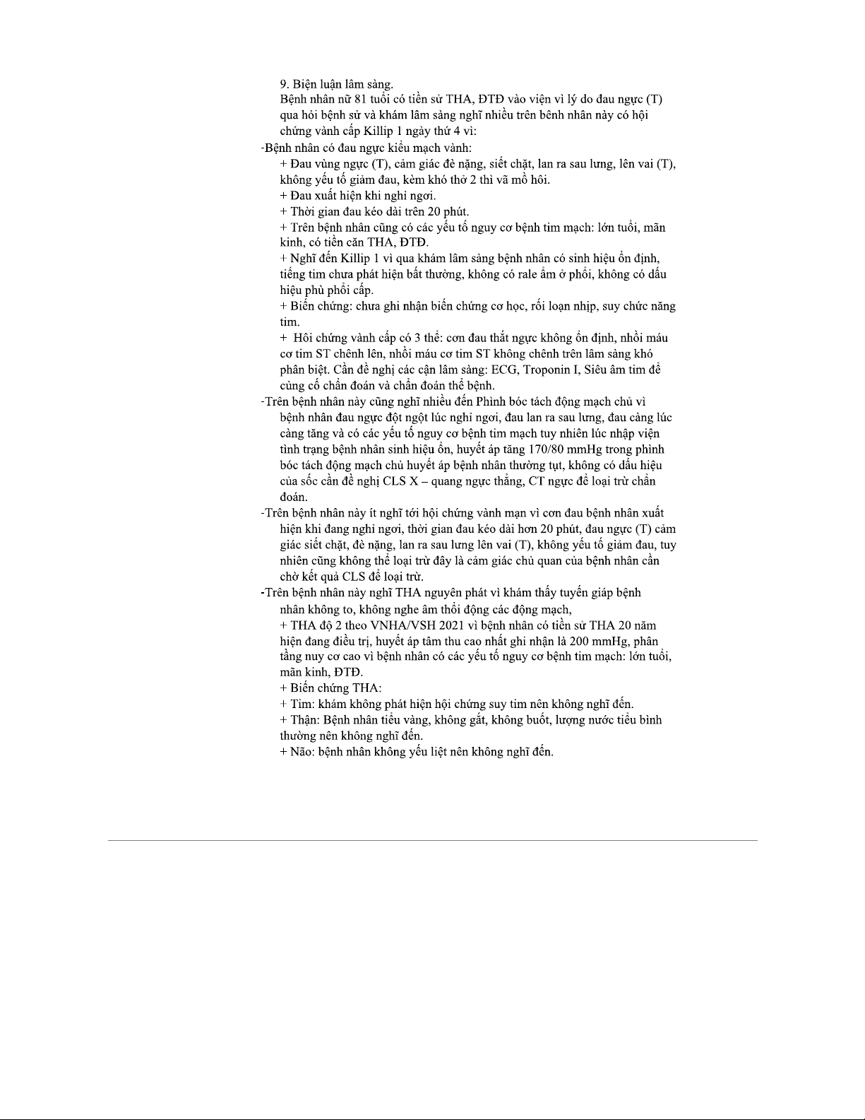 BỆNH ÁN NỘI KHOA TM - Đau ngực cấp và Chẩn đoán sơ bộ