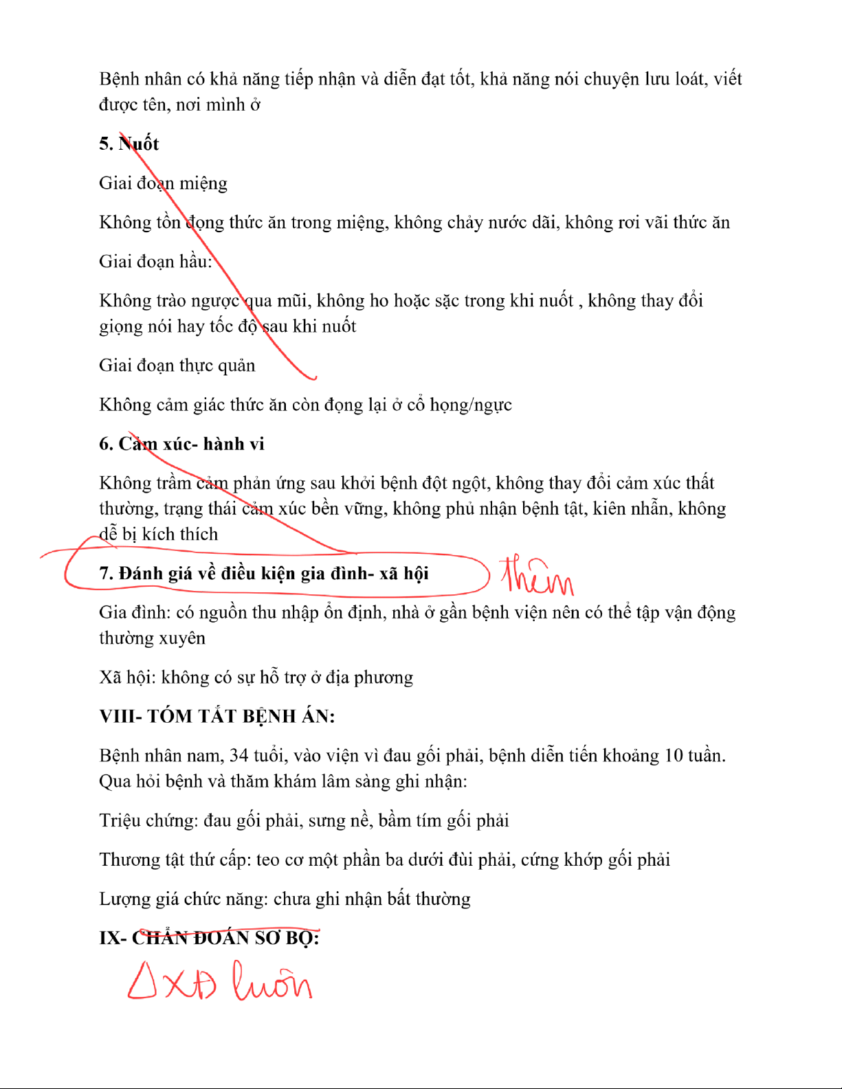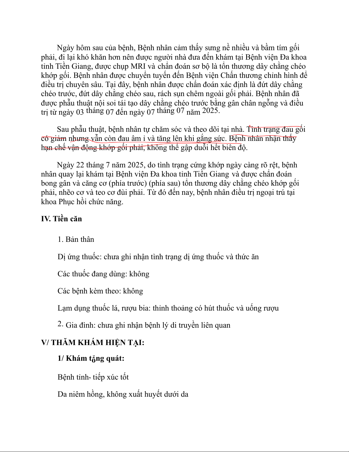 II. Lý do vào viện: Đau gối phải III. Bệnh sử: