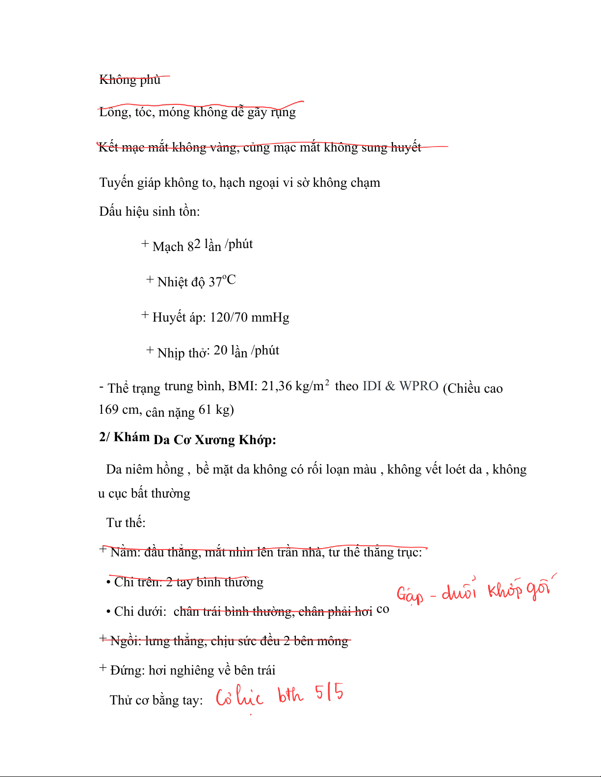 - Thể trạng trung bình, BMI: 21,36 kg/m 2 theo IDI & WPRO ( Chiều cao 169 cm, cân nặng 61 kg )