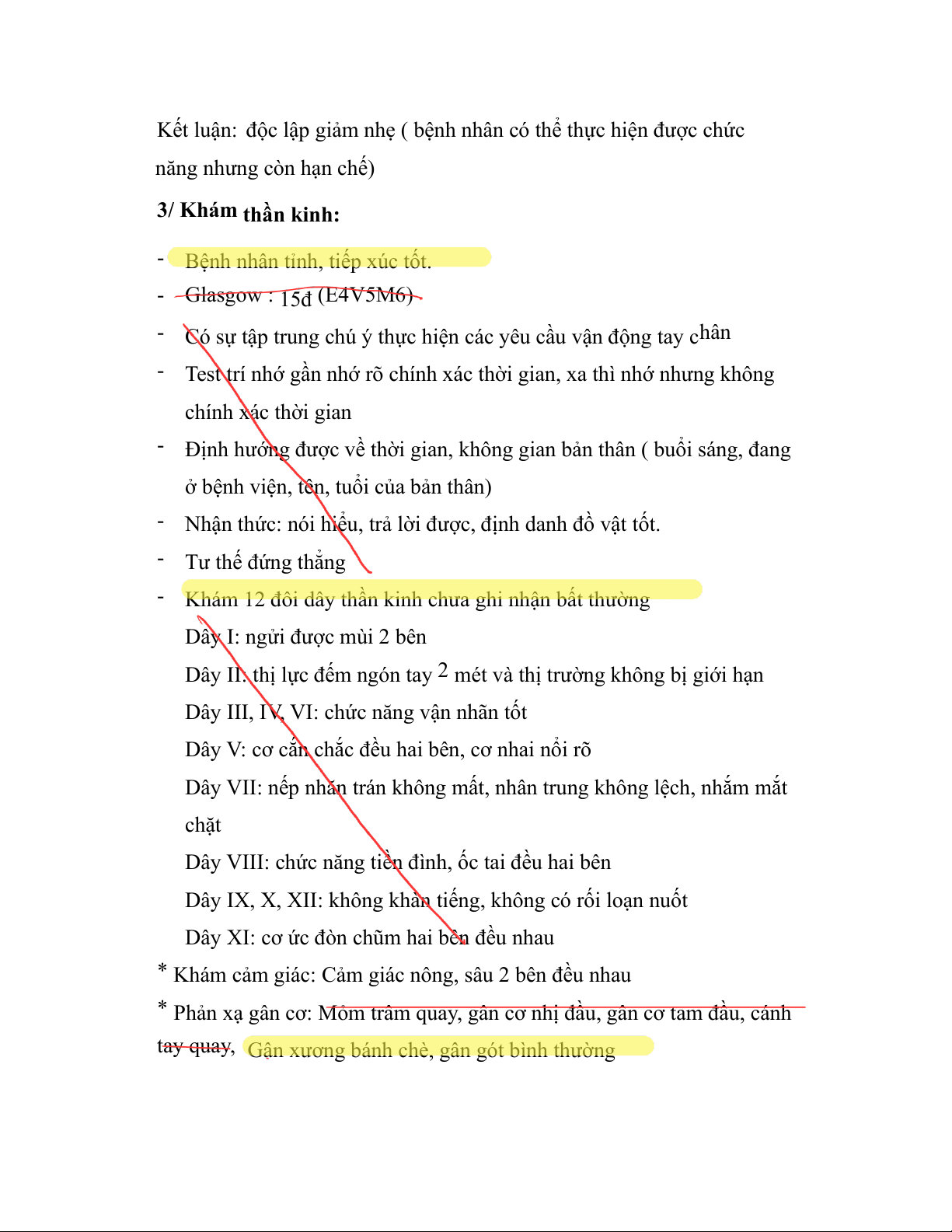 - Khám 12 đôi dây thần kinh chưa ghi nhận bất thường