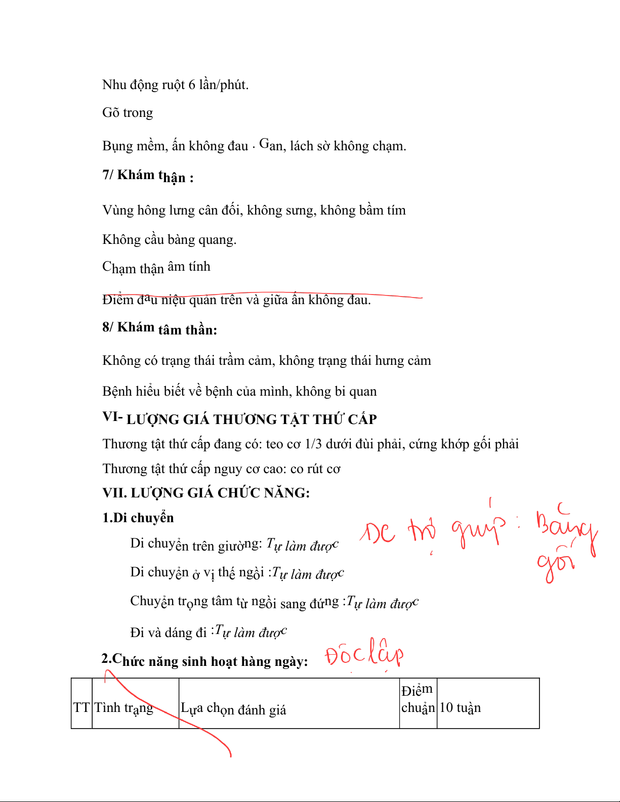 VII. LƯỢNG GIÁ CHỨC NĂNG: 1 .Di chuyển Di chuy ể