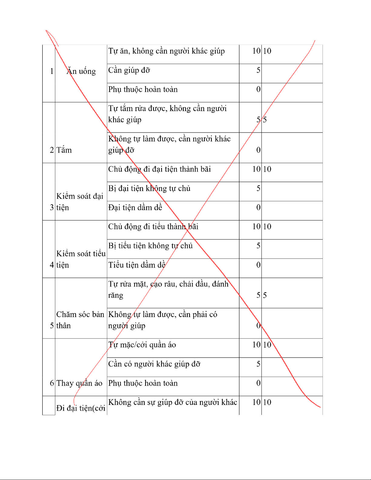 2. C hức năng sinh hoạt hàng ngày: Đi ể m TT Tình tr ạ ng L ự a ch ọ n đánh giá chu ẩ n 10 tu ầ n lOMoAR cPSD| 45470709