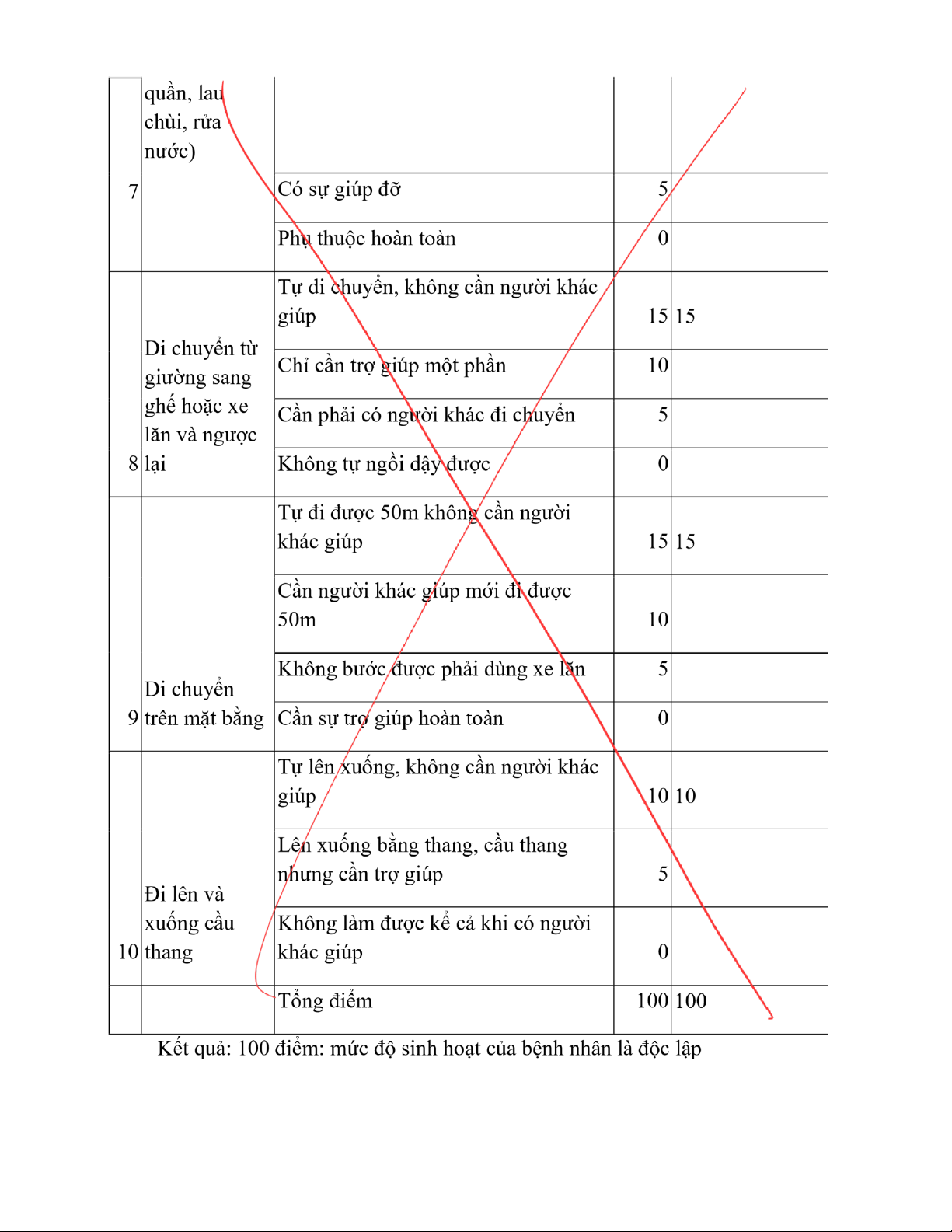 Kết luận: độc lập giảm nhẹ ( bệnh nhân có thể thực hiện được chức