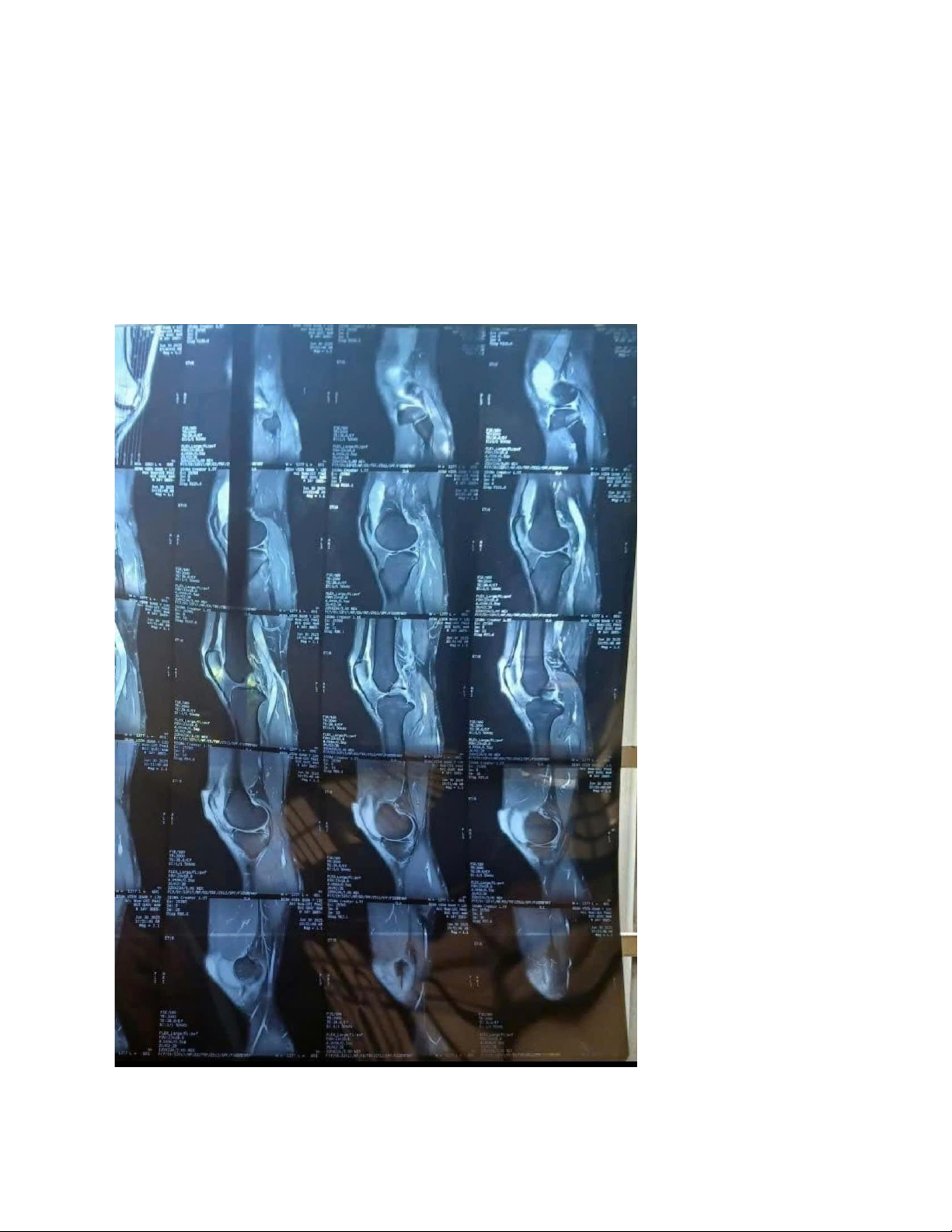 MRI: đứt dây chằng chéo trước, dây chằng chéo sau, rách sụn chêm ngoài gối phải