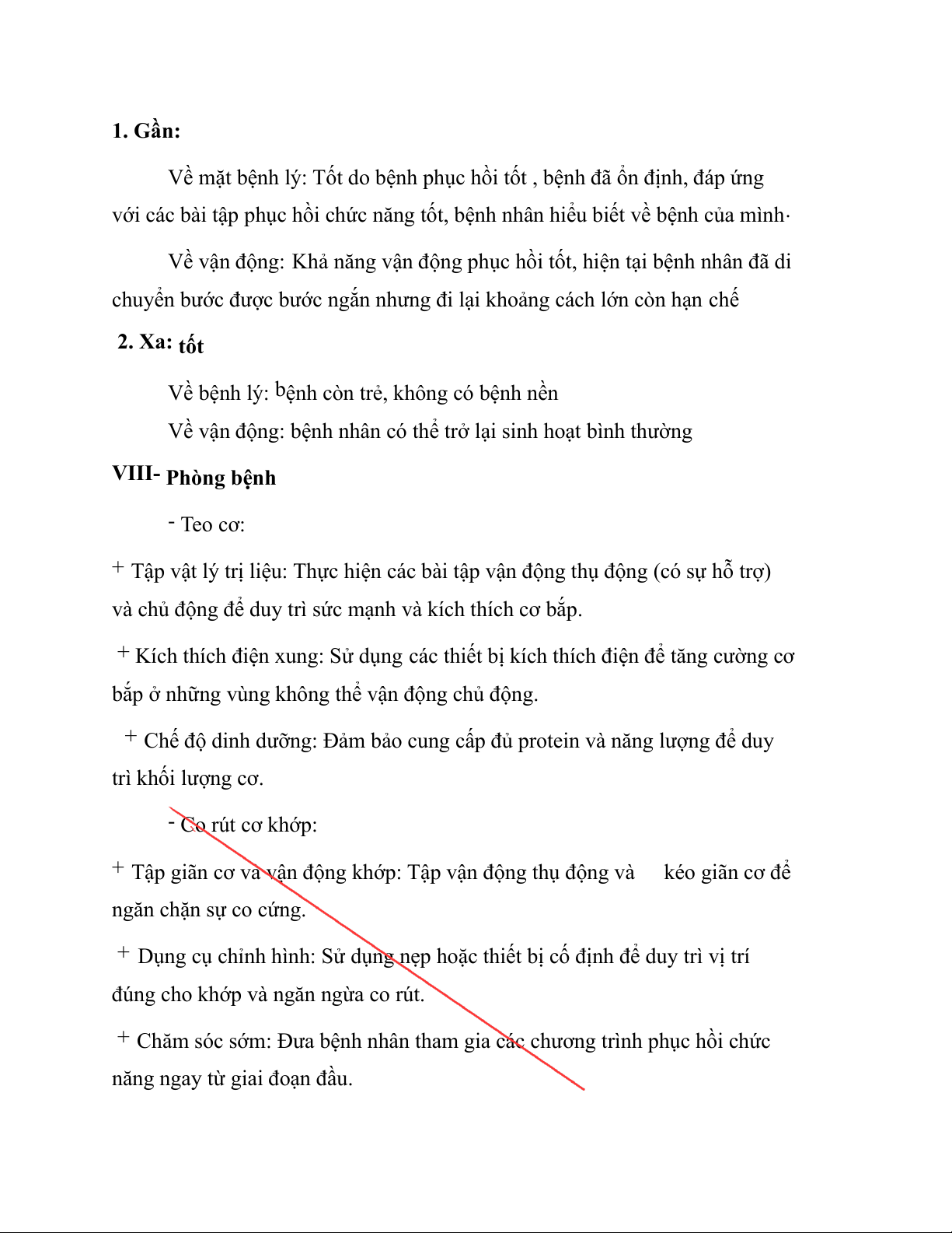 2. Xa : tốt Về bệnh lý: