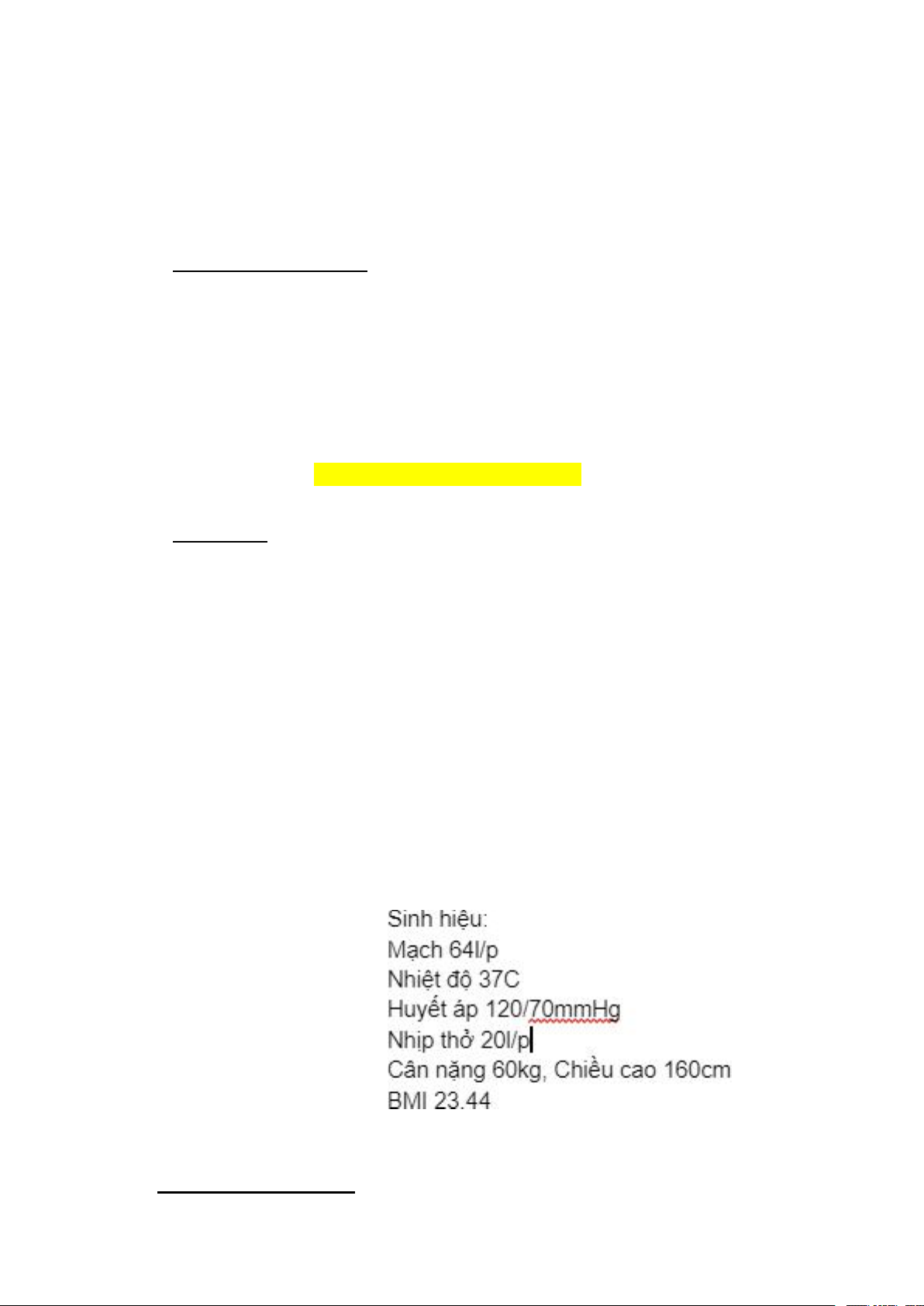 • Bệnh nhân tỉnh táo, tiếp xúc tốt • Da niêm mạc hồng