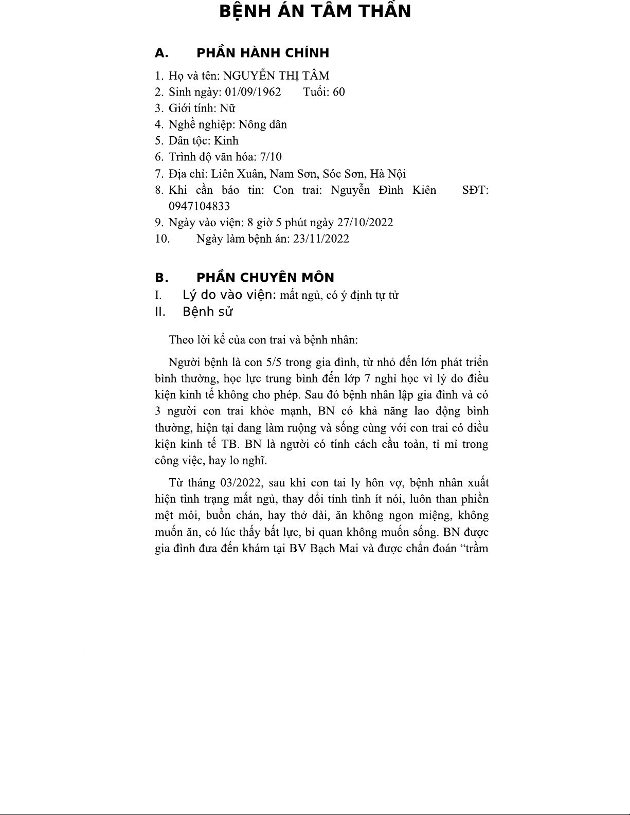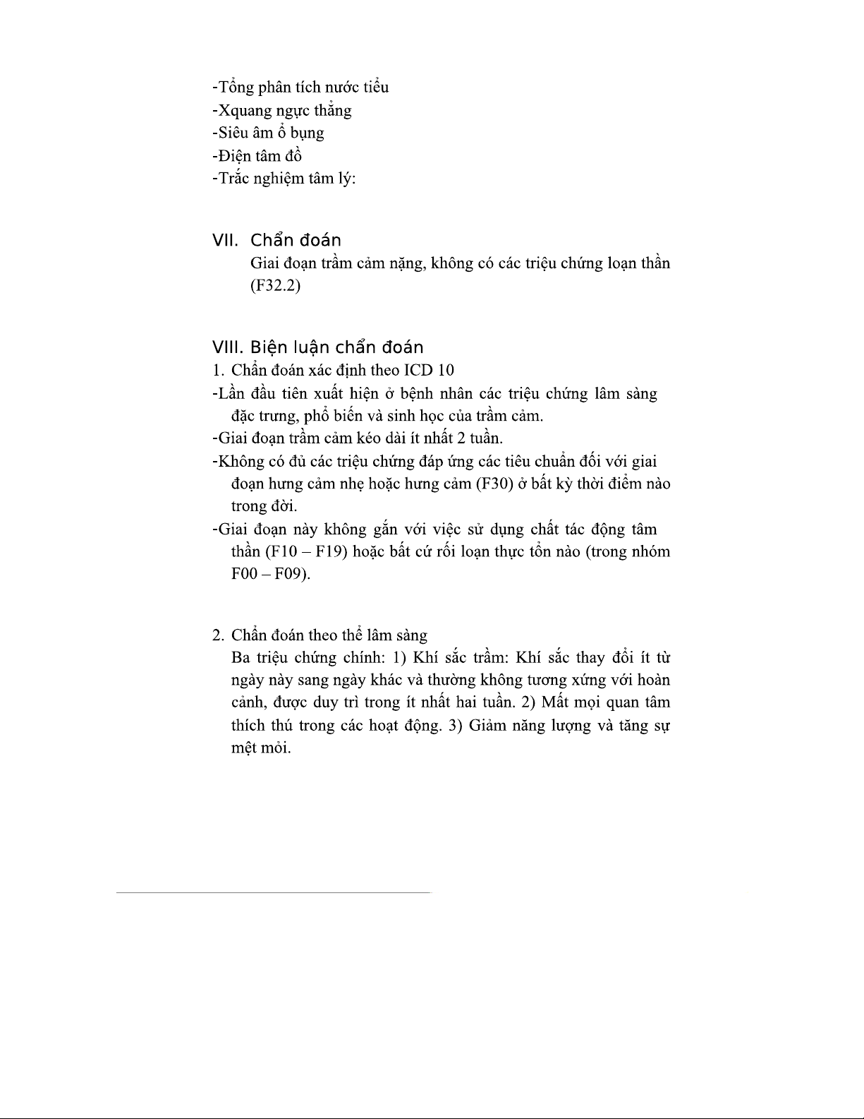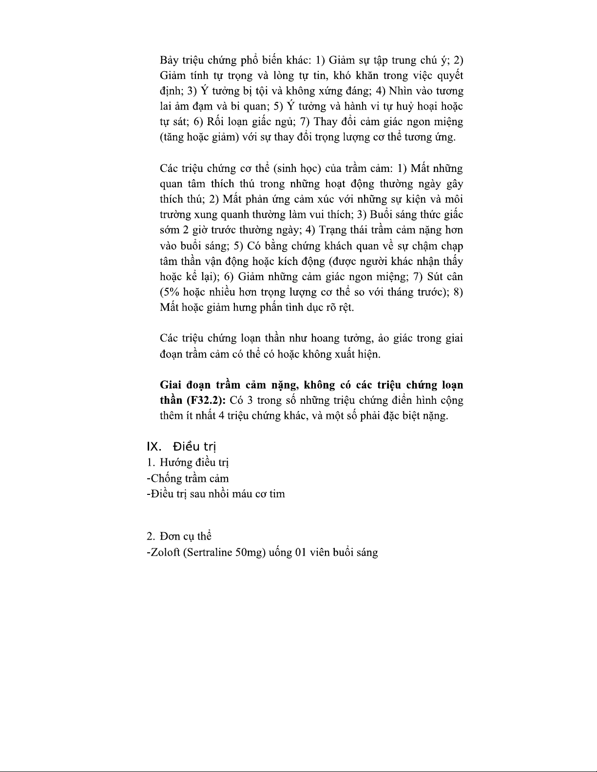 BỆNH ÁN TÂM THẦN - TRẦM CẢM NẶNG (F32.2) - 1 222