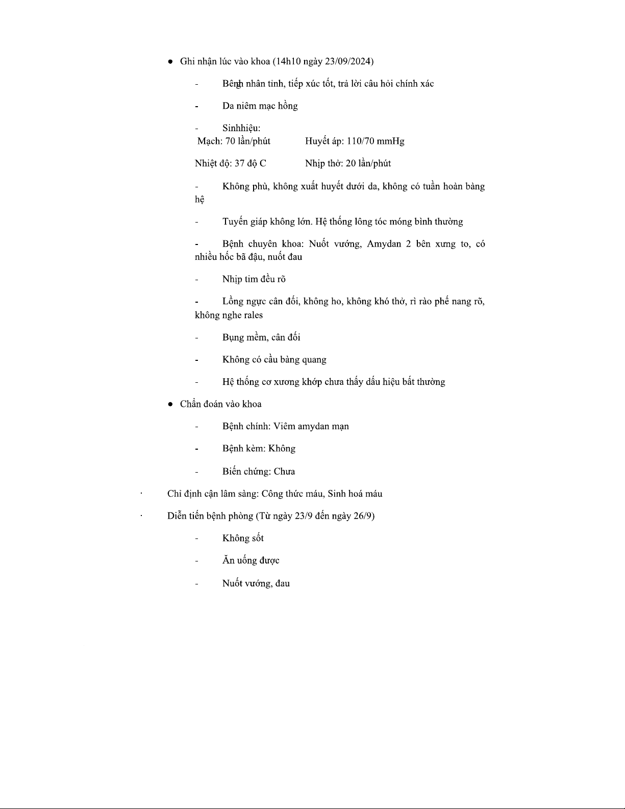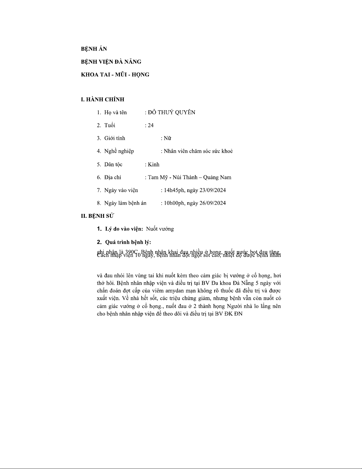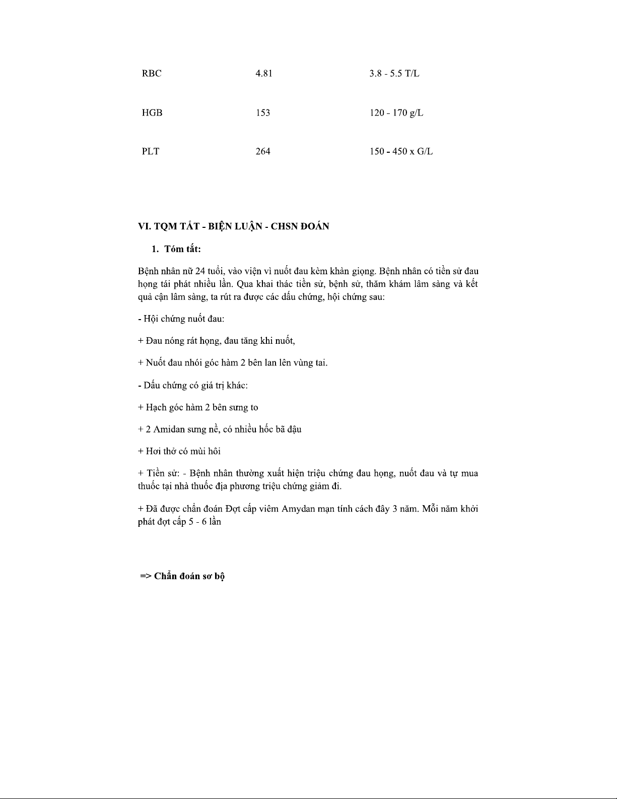 Bệnh án tham khảo về Viêm Amydan tại BV Đà Nẵng - Tình huống 2024