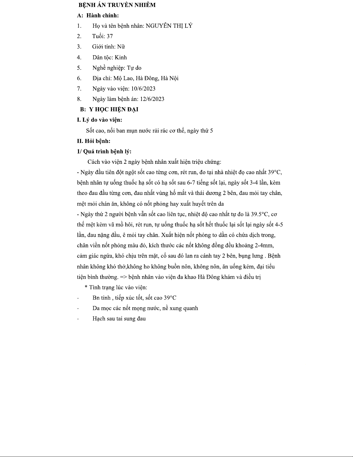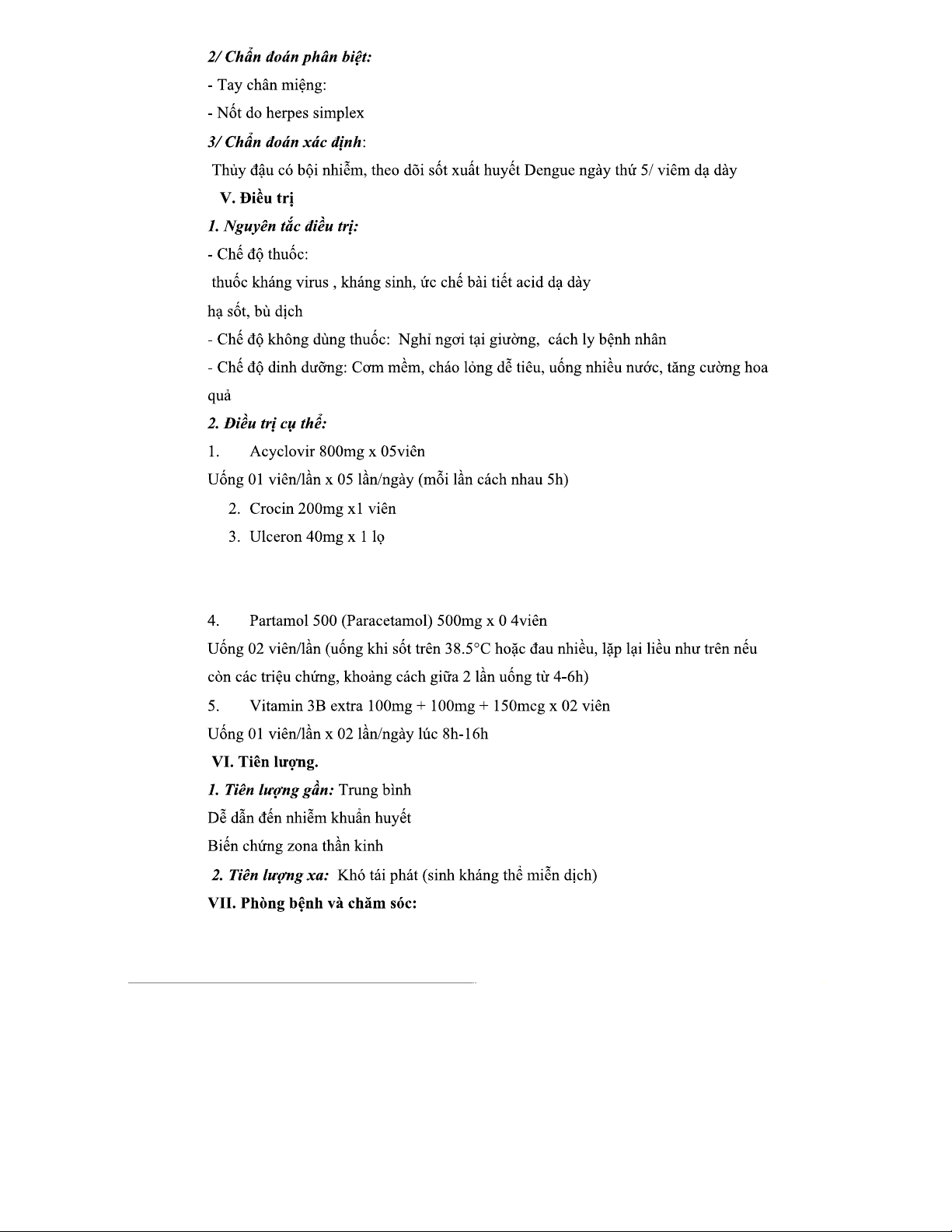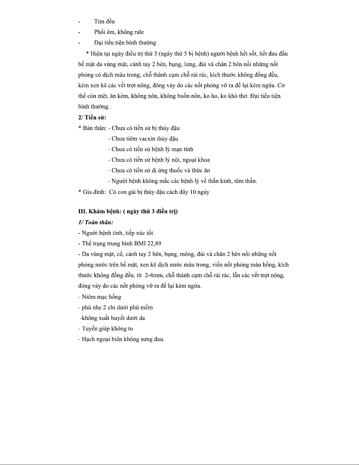 Bệnh án Thủy đậu - Nữ 37 tuổi: Triệu chứng và chẩn đoán