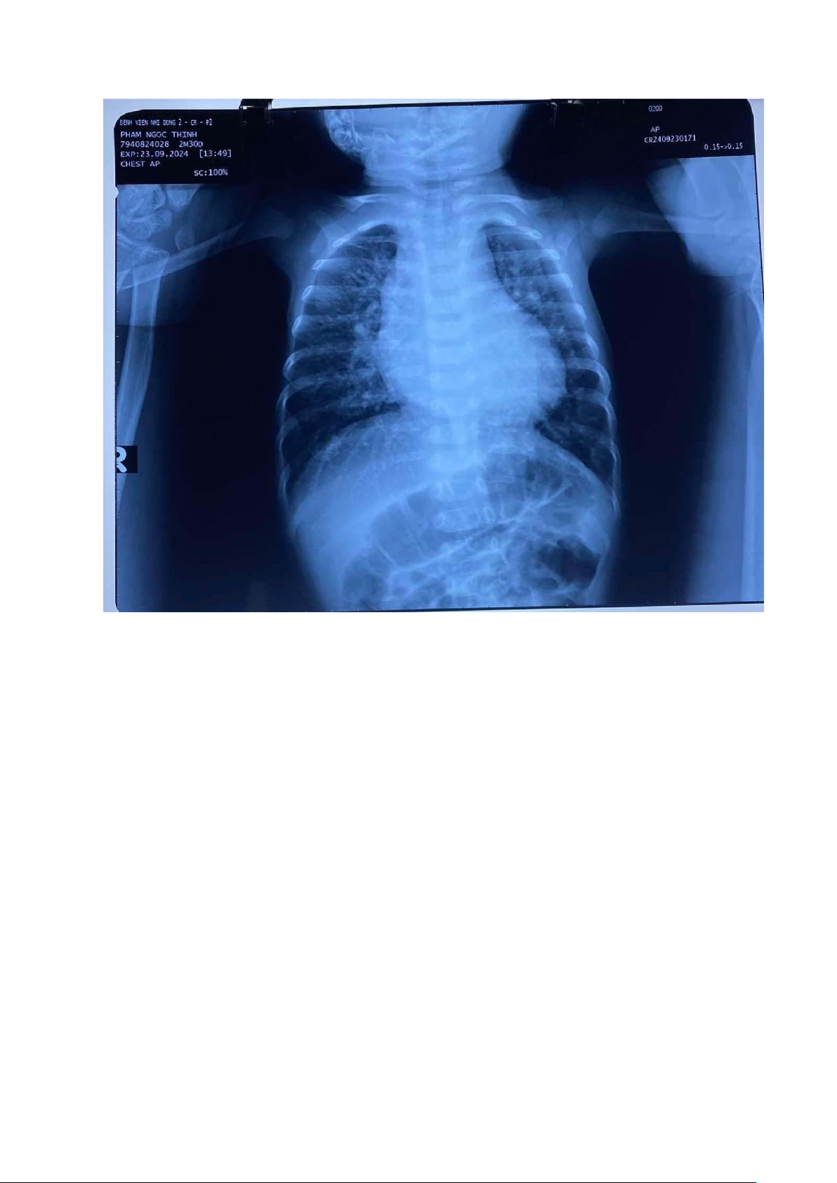 ph t, thở nhanh co l m, xquang b n y phổi mờ c thể vi m phổi + tăng tuần ho n phổi lun, tim: xquang mỏm