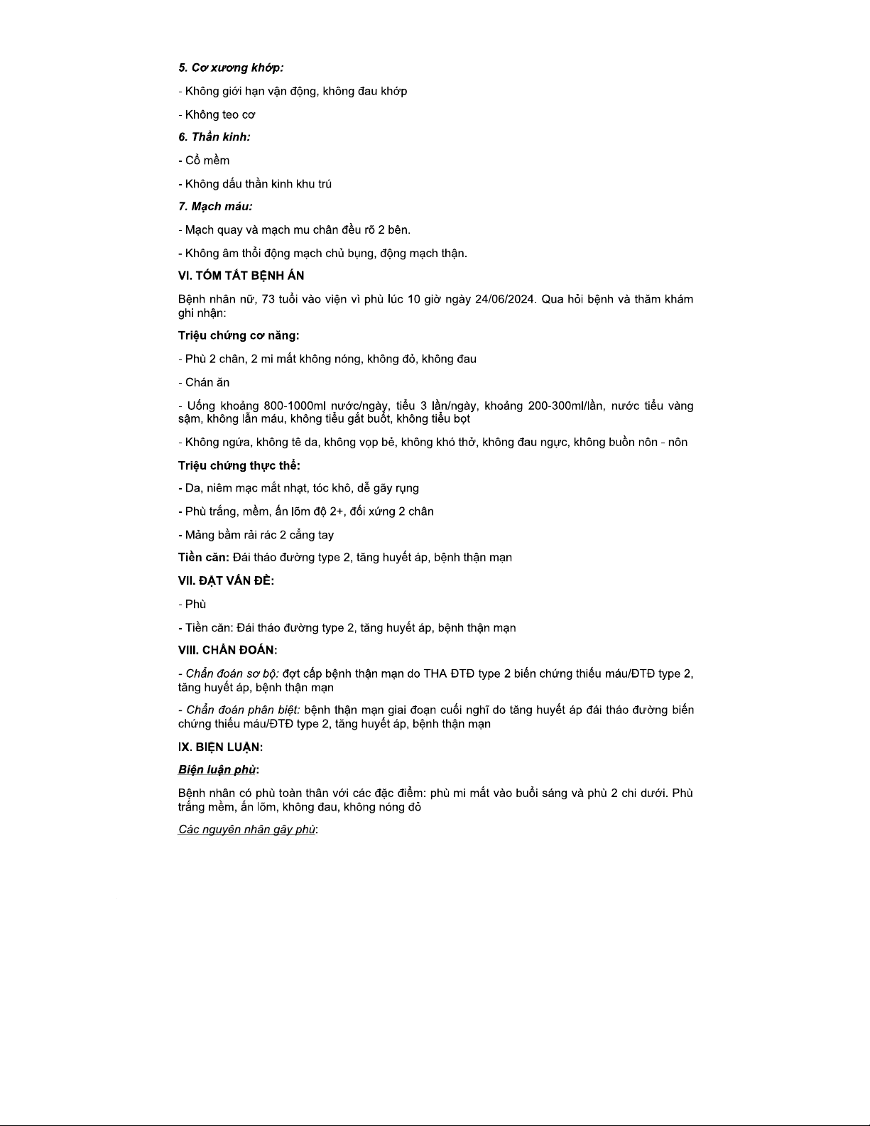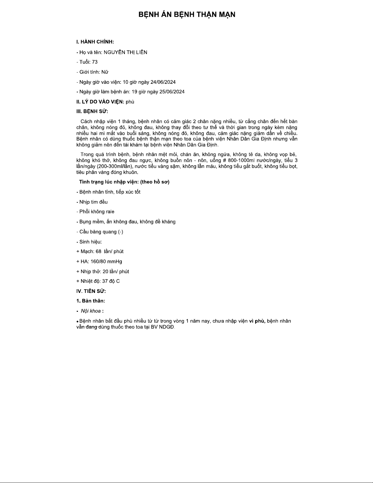 BỆNH ÁN VỀ BỆNH THẬN MẠN - TÀI LIỆU CHO HỌC KỲ 2024