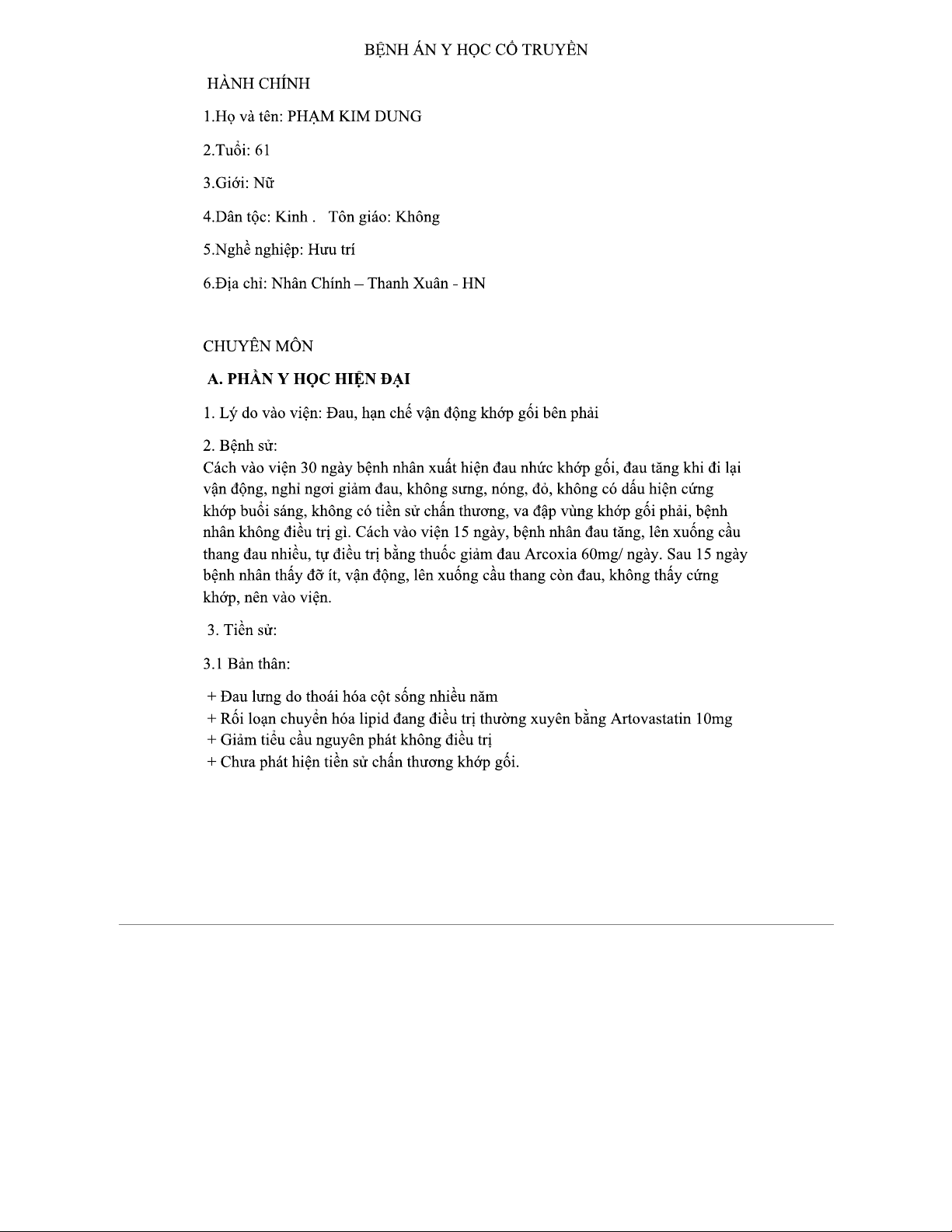 BỆNH ÁN YCHT2 - Báo cáo ca bệnh về đau khớp gối ở người già