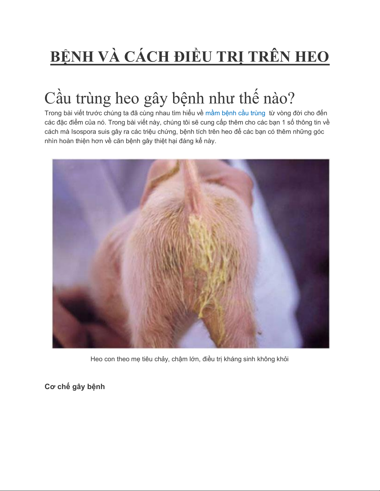 là Eimeria, heo con từ 1-3 tháng tuổi thường mang mầm bệnh này trong cơ thể nhưng hầu như