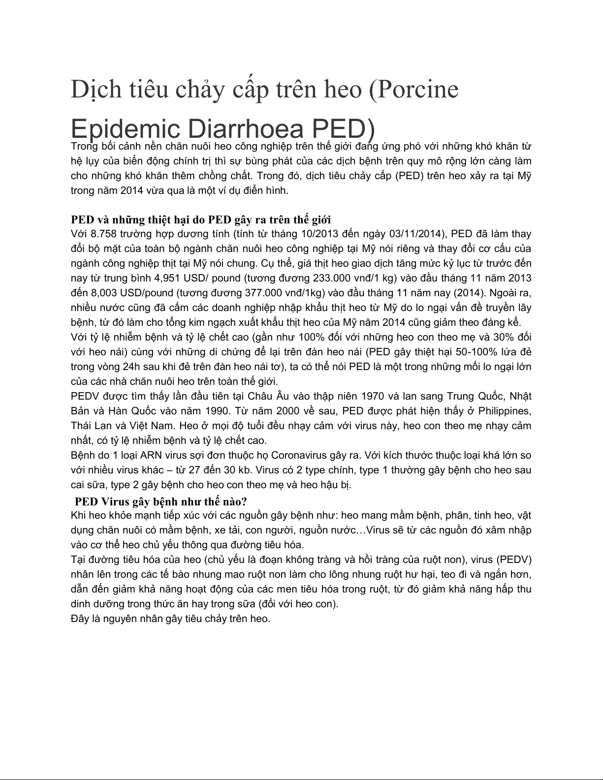 các triệu chứng, bệnh tích điển hình trên, bạn gần như có thể khẳng định đó là PED hoặc là bệnh