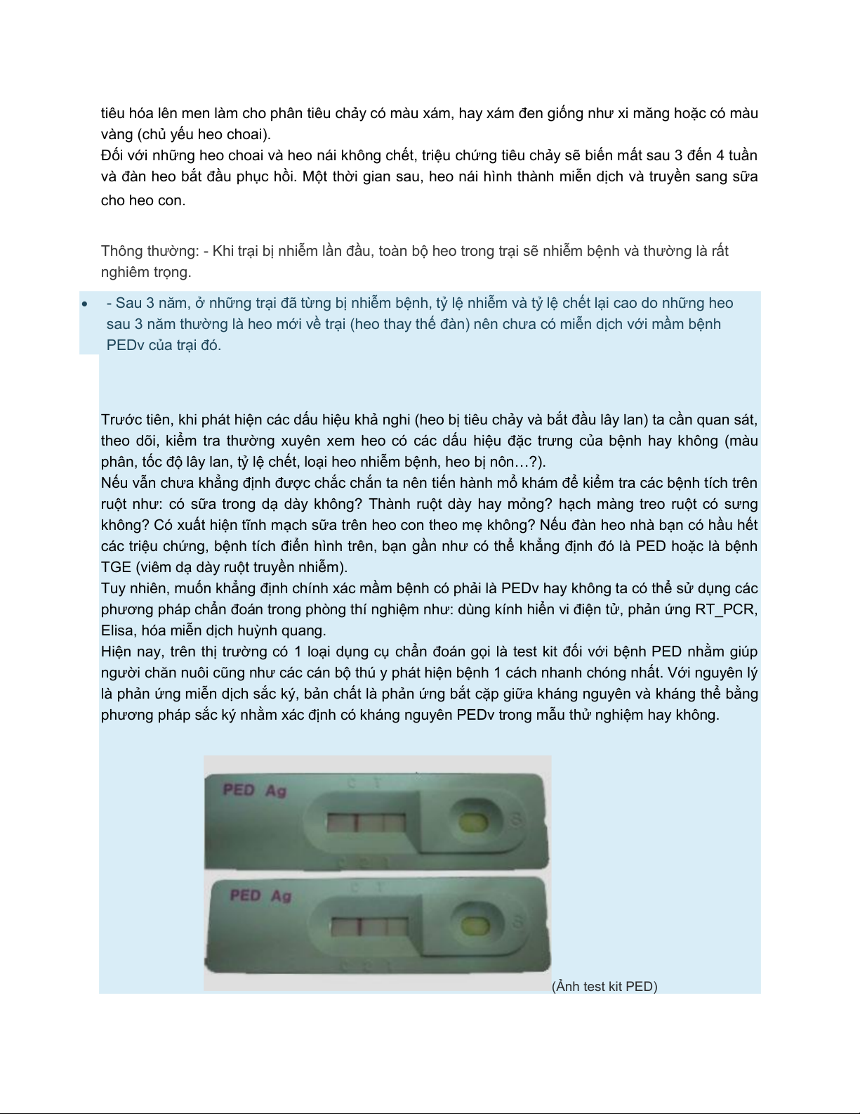 Hiện nay, trên thị trường có 1 loại dụng cụ chẩn đoán gọi là test kit đối với bệnh PED nhằm giúp