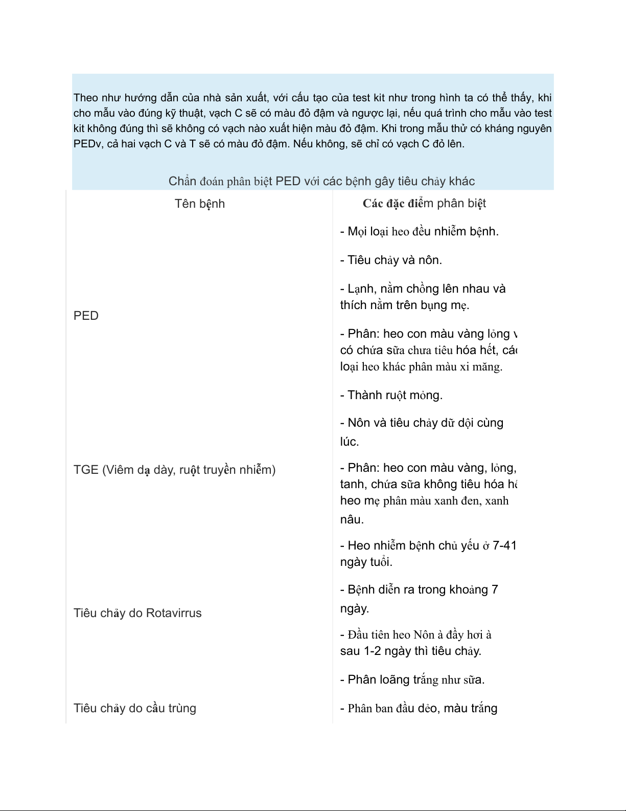PEDv, cả hai vạch C và T sẽ có màu đỏ đậm. Nếu không, sẽ chỉ có vạch C đỏ lên. Chẩn t PED v đoán phân biệ