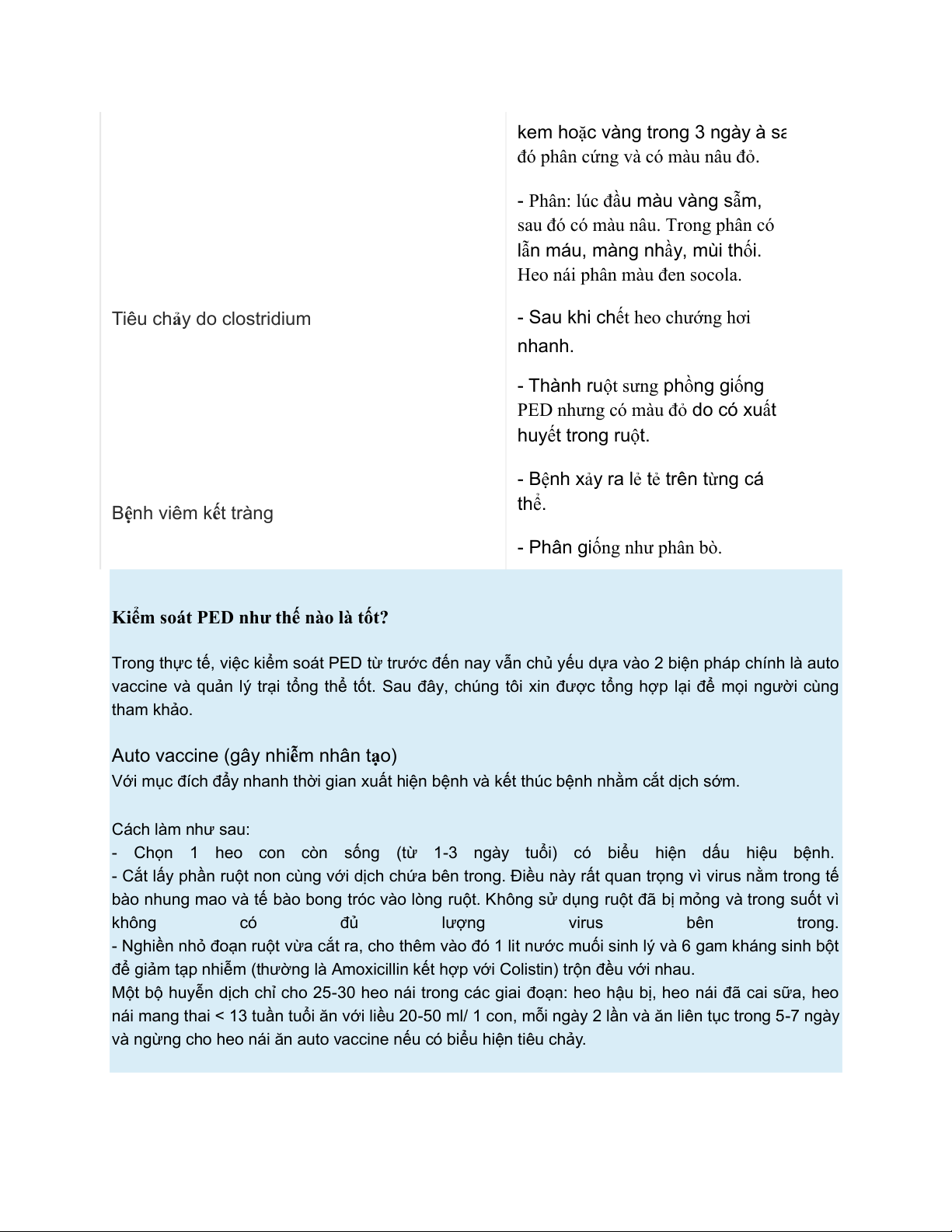 và ngừng cho heo nái ăn auto vaccine nếu có biểu hiện tiêu chảy.