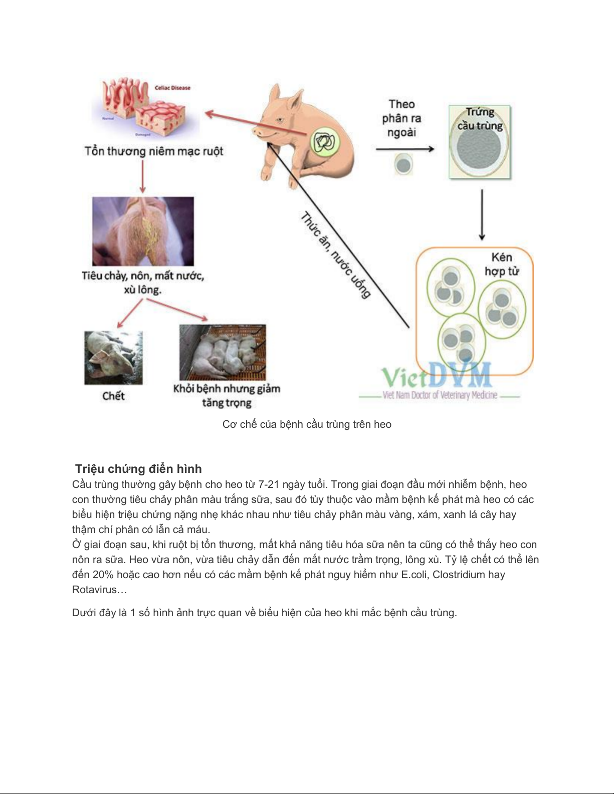 hết heo con ở các trang trại lại rất dễ dàng mắc cầu trùng nếu không được phòng bệnh ngay từ đầu.