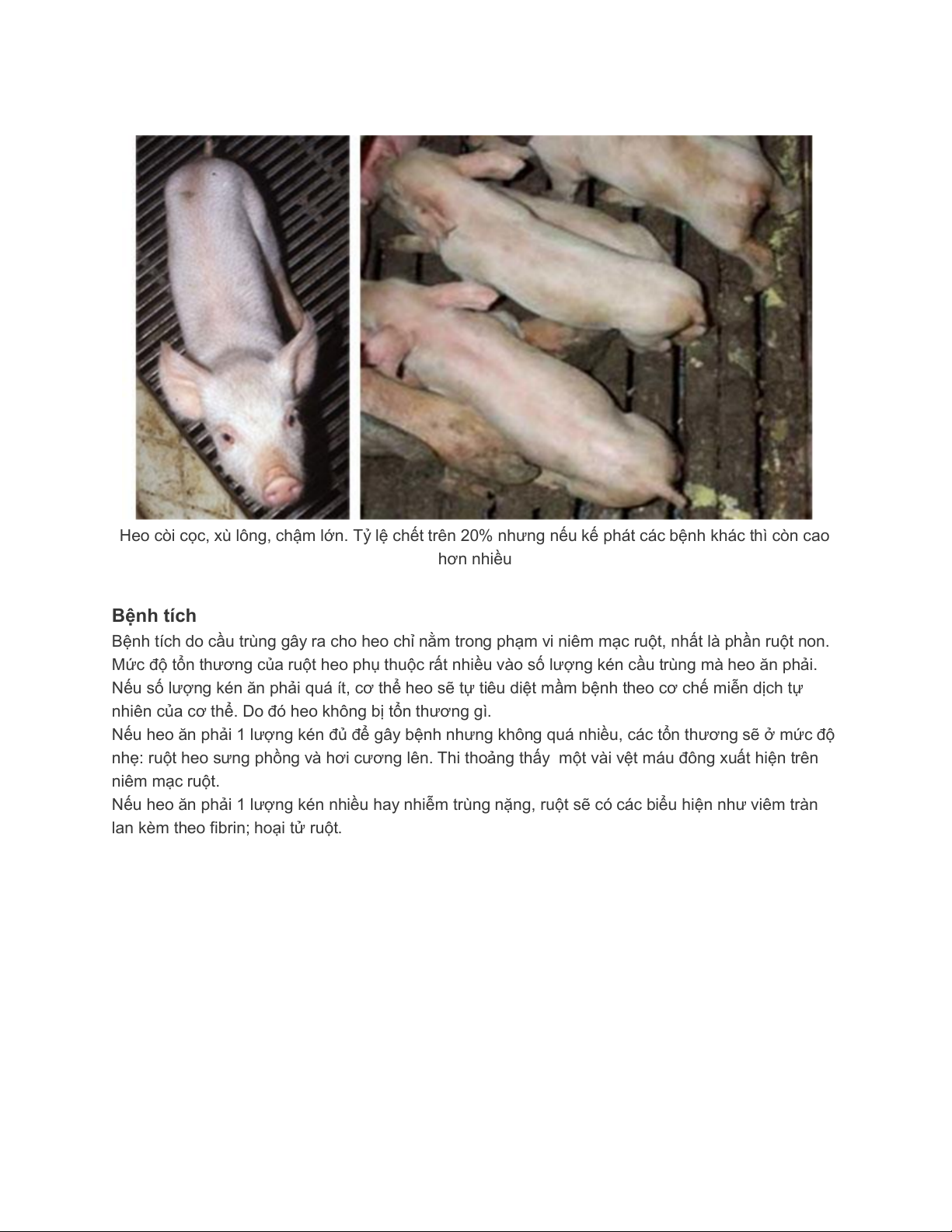 ruột cũng khó bị phá hủy hơn nên tỷ lệ nhiễm và tỷ lệ chết không cao như heo con. Những heo lớn