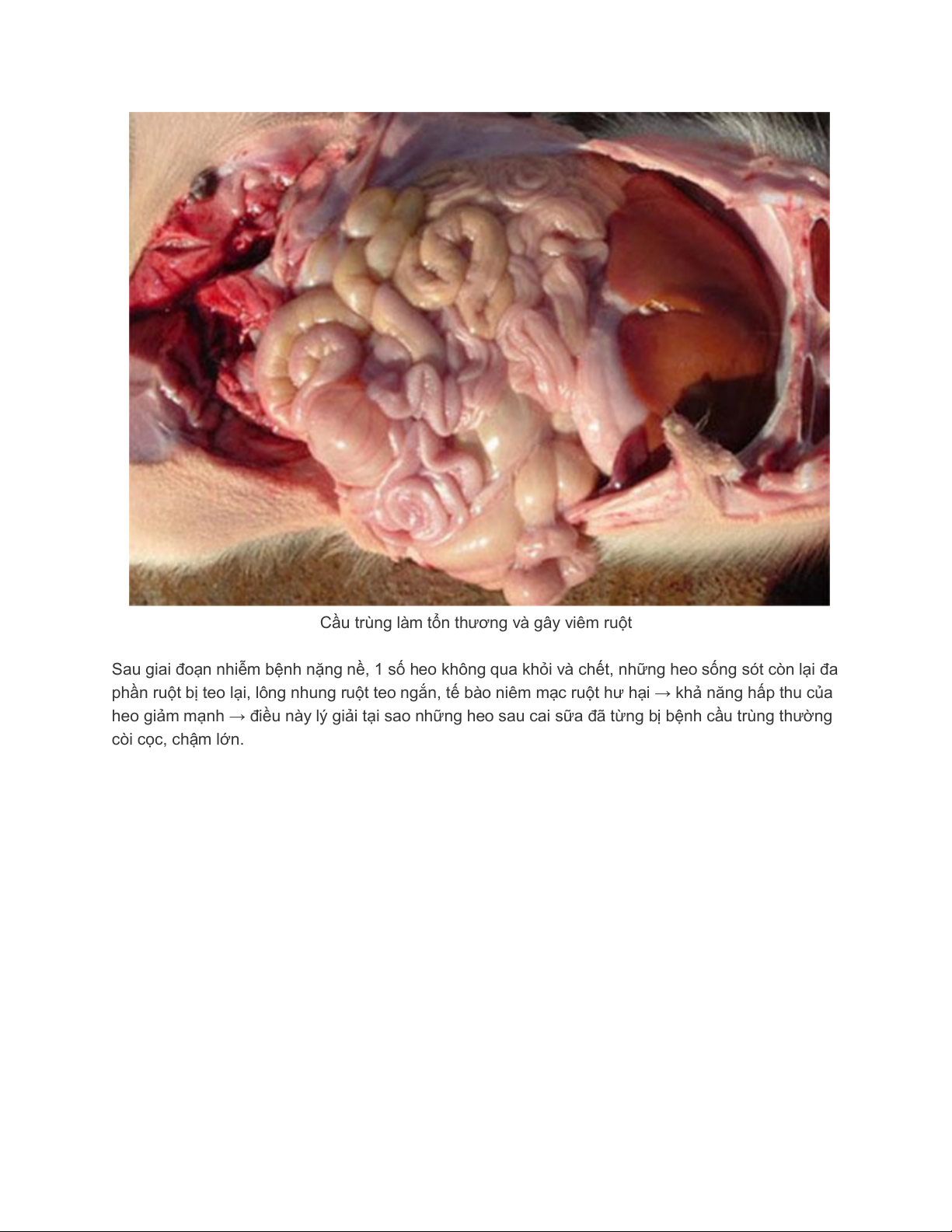 heo giảm mạnh → điều này lý giải tại sao những heo sau cai sữa đã từng bị bệnh cầu trùng thường còi cọc, chậm lớn.