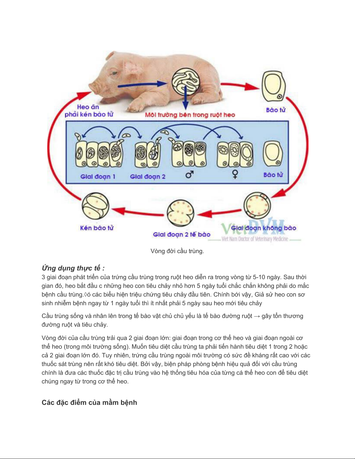 thể heo (trong môi trường sống). Muốn tiêu diệt cầu trùng ta phải tiến hành tiêu diệt 1 trong 2 hoặc