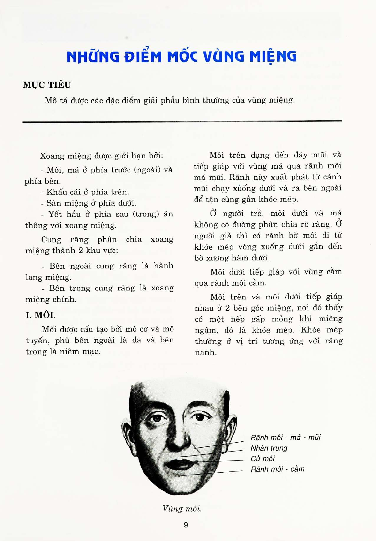 Môi trên đụng đến đáy mũi và tiếp giáp với vùng má qua rãnh môi má mũi. Rãnh này xuất phát từ cánh mũi chạy xuống dưới và ra bên ngoài để tận cùng gần khóe mép. Ở người trẻ, môi dưới và má không có đường phân chia rõ ràng. Ở người già thì có rãnh bờ môi đi từ khóe mép vòng xuống dưới gần đến bờ xương hàm dưới. Tài liệu giúp bạn tham khảo, ôn tập và đạt kết quả cao. Mời đọc đón xem!