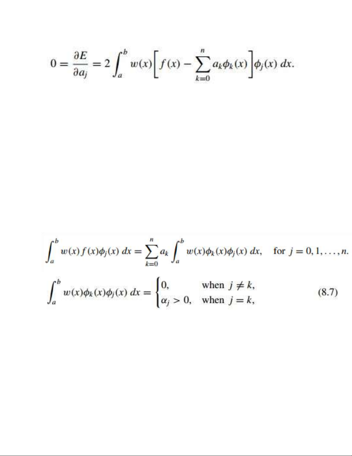 for each j = 0, 1, . . . , n. These are easily solved to give Hence the least squares approximation problem is greatly simplified when the
