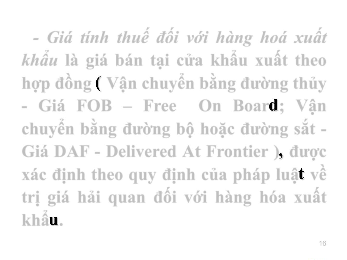 trị giá hải quan đối với hàng hóa xuất khẩu. 16